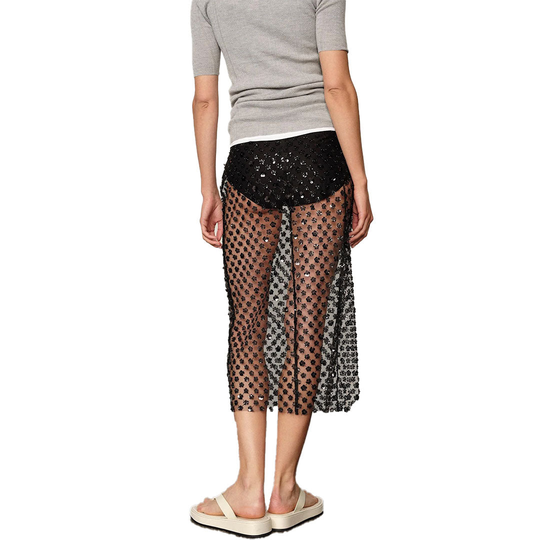 A modern expression of femininity with a subtle statement texture. The Angel Skirt features built-in panties attached only at the waistband, allowing for effortless layering. Pair with a little black slip skirt or opaque black stockings for added coverage.