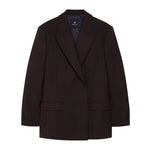 A fully constructed blazer crafted from a midweight, tuxedo wool blend suiting fabrication, featuring a slim hourglass fit with a notched collar, asymmetric profile and concealed button closure.