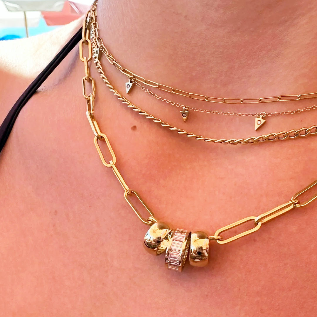 Introducing Salt.'s stunning 14K Gold Channel-Set Baguette Lab Diamond Rondelle. This eternity-style bead features diamonds on all sides, meaning there is no specific front or back. Rondelles are a fun and versatile way to add interest to your chain. You can easily slip a single rondelle onto your favorite chain or tennis necklace, or layer several for a striking look. These beautiful pieces are perfect for changing up your style!