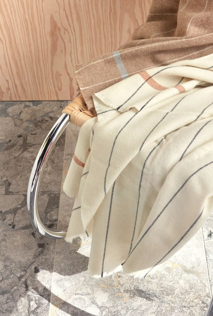 The Balama Blanket is constructed in a combination of natural wool and alpaca fiber. The wool gives volume while the alpaca fiber adds insulating qualities and an extremely soft touch.