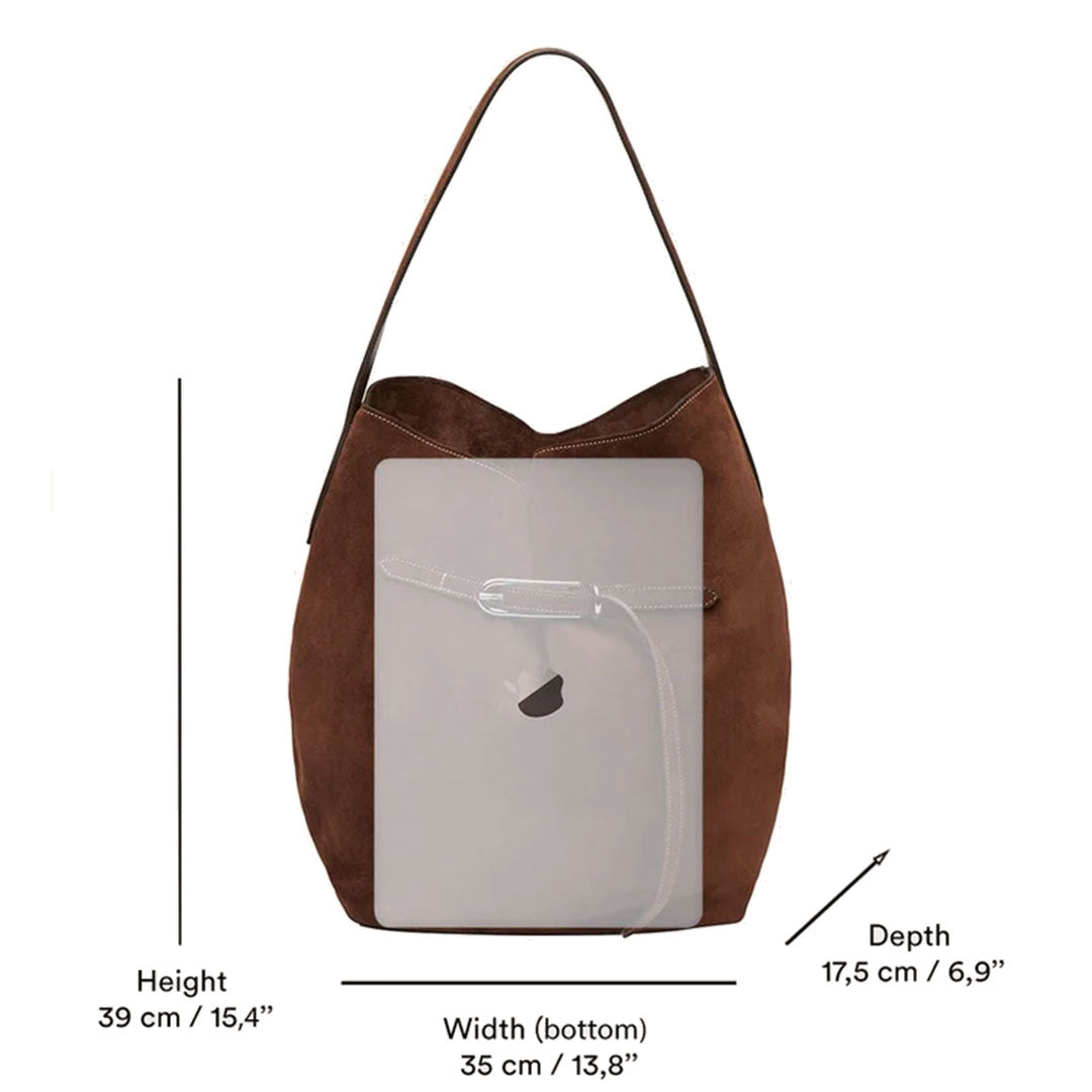 Timeless aesthetic seamlessly merges with modern practicality in the Belted Bucket Bag. Its curved shape, inspired by organic silhouettes found in nature, is cinched with a slender buckle. Perfectly sized to fit a 13” laptop, among other essentials, it’s the ideal pick for workdays in the city.