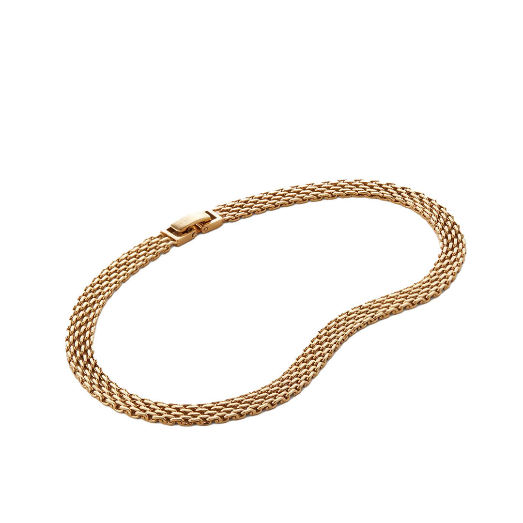 The cool girl piece you need in your jewelry collection, this flat mesh chain lays flush against the skin, following the ankle's natural curves. A custom foldover clasp makes for easy closure. Finished in high-polish gold.