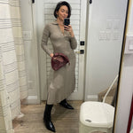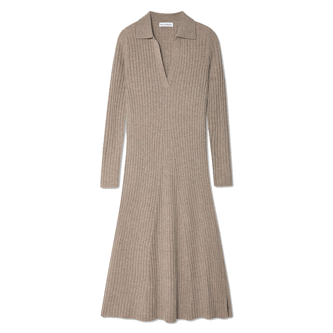 Crafted with the structure of Merino wool and the softness of cashmere, this mid-length dress is a true day-to-night style. Featuring an open collared neckline and allover ribbed texture, the silhouette is designed to skim your body, while still offering movement as you walk. Slip into this easy look with boots by day and heels by night.