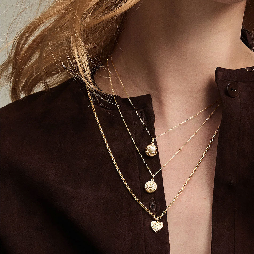 AR's petite Celestial Diamond Locket Mini Charm is handcrafted in 9k yellow gold and accented with pavé-set diamonds. Its shimmering surface features engraved starbursts and opens to reveal space for engraving.