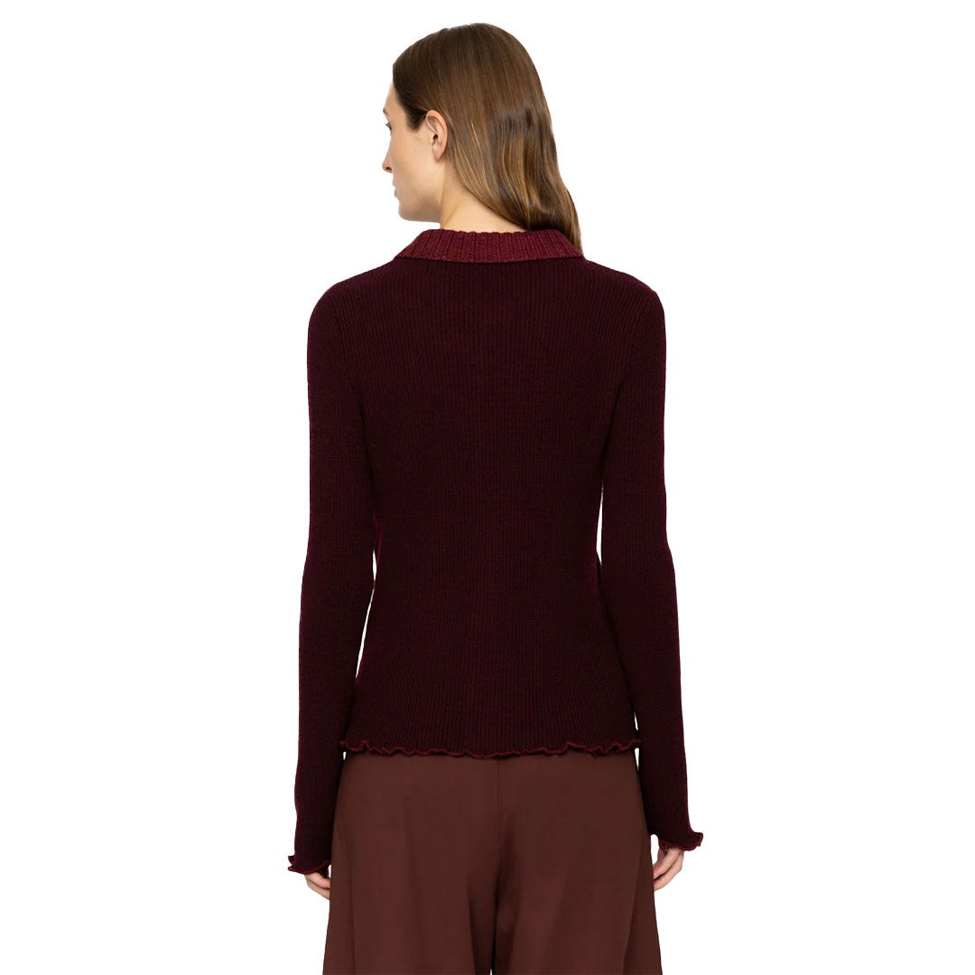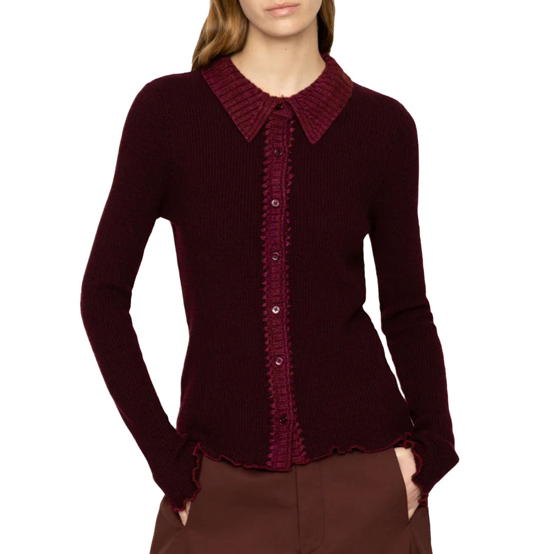 The Clare thermal long sleeve knit cardigan features contrast ribbed trim and ruffle detailing. Pairs perfectly with the Clare thermal knit pants.
