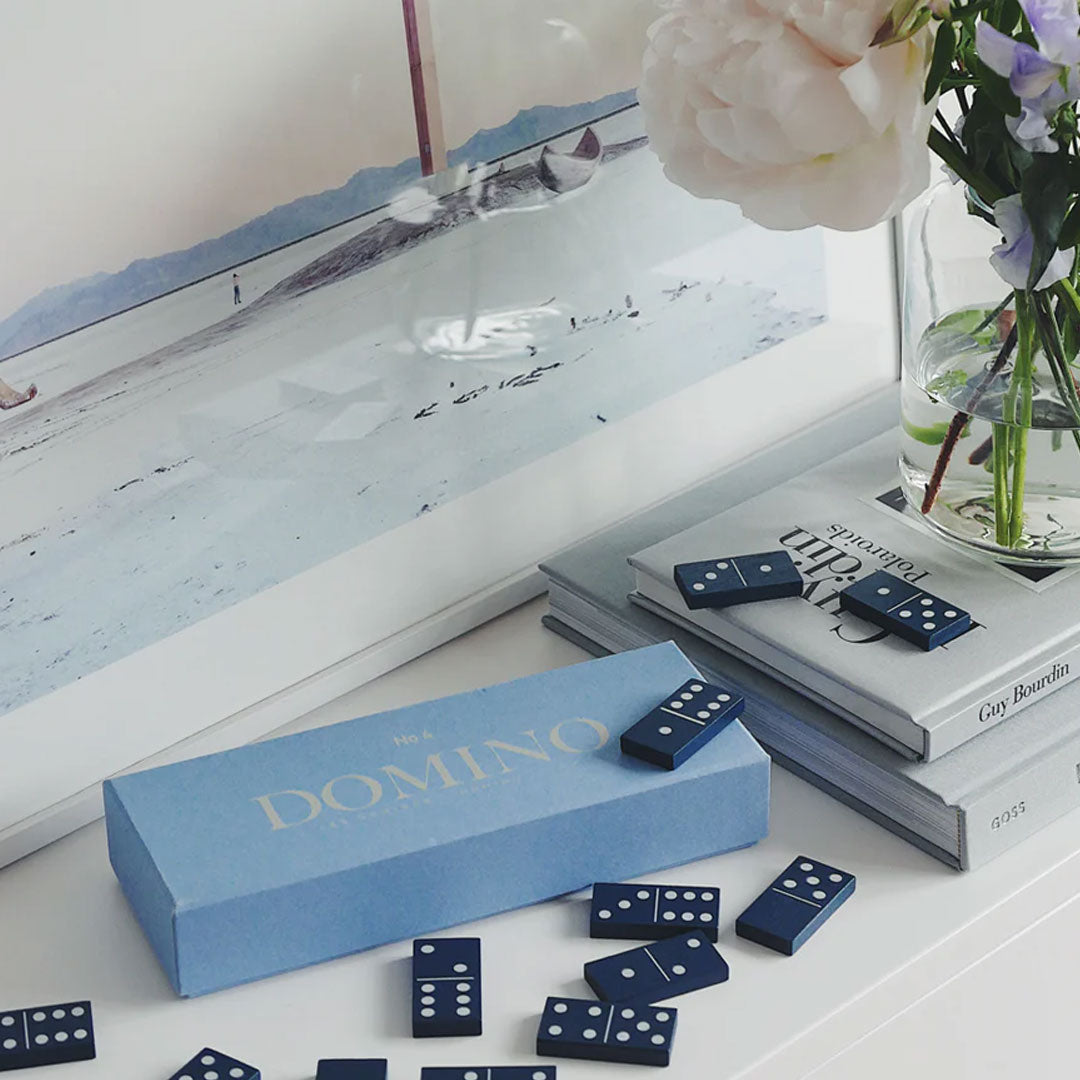 Elevate your Domino set with a new aesthetic twist combining style and entertainment. Our Domino game includes 28 wooden game pieces and easy-to-read English, French, and German instructions. It is recommended for up to 6 players and ages 4+.