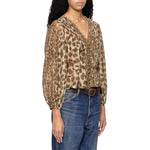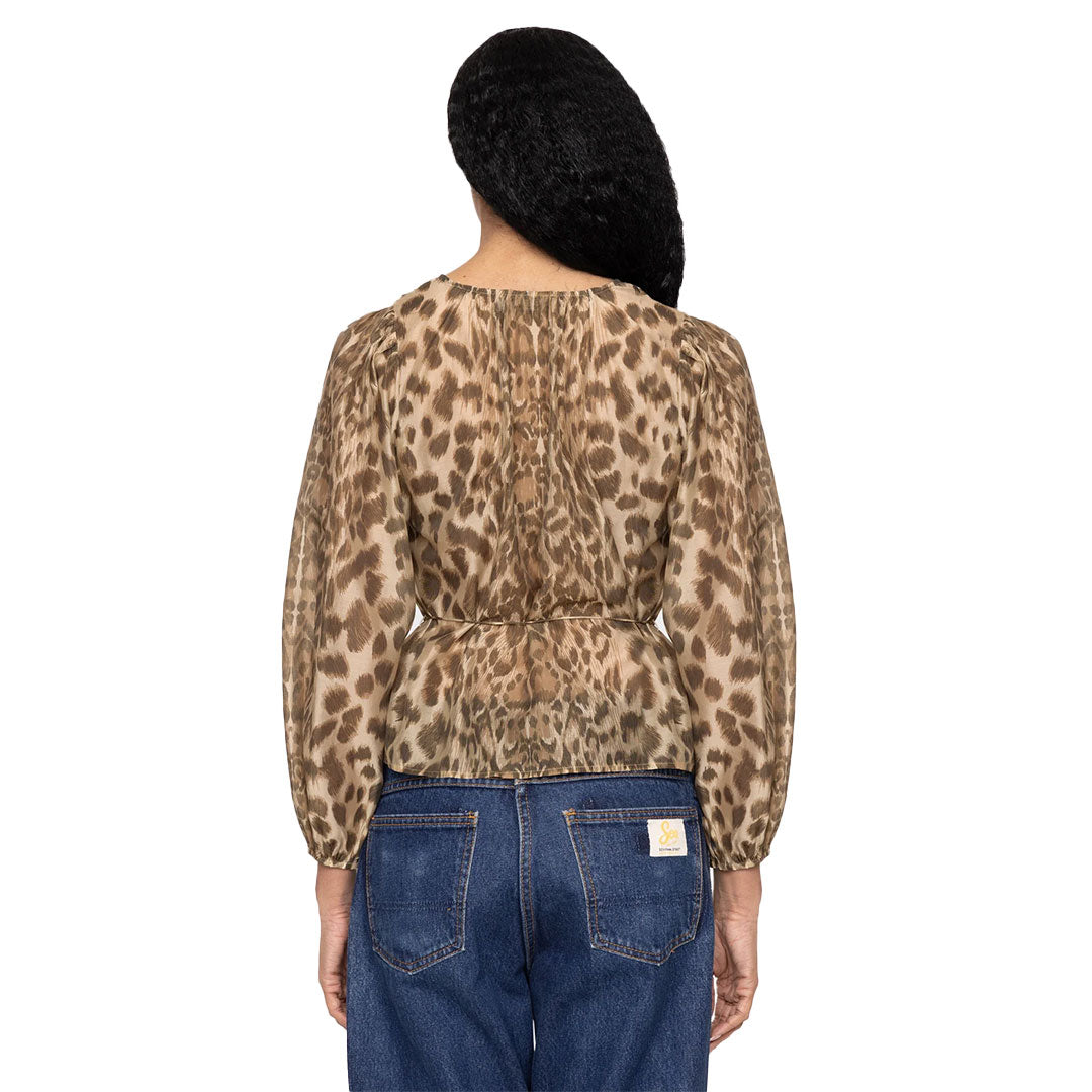 The Claude leopard print top features detailed pleating and a self-tie belt, adding both texture and shape to its flattering silhouette. The button-down front and long puff sleeves are complemented by the bold animal print, making it the perfect blouse to transition from day to night.