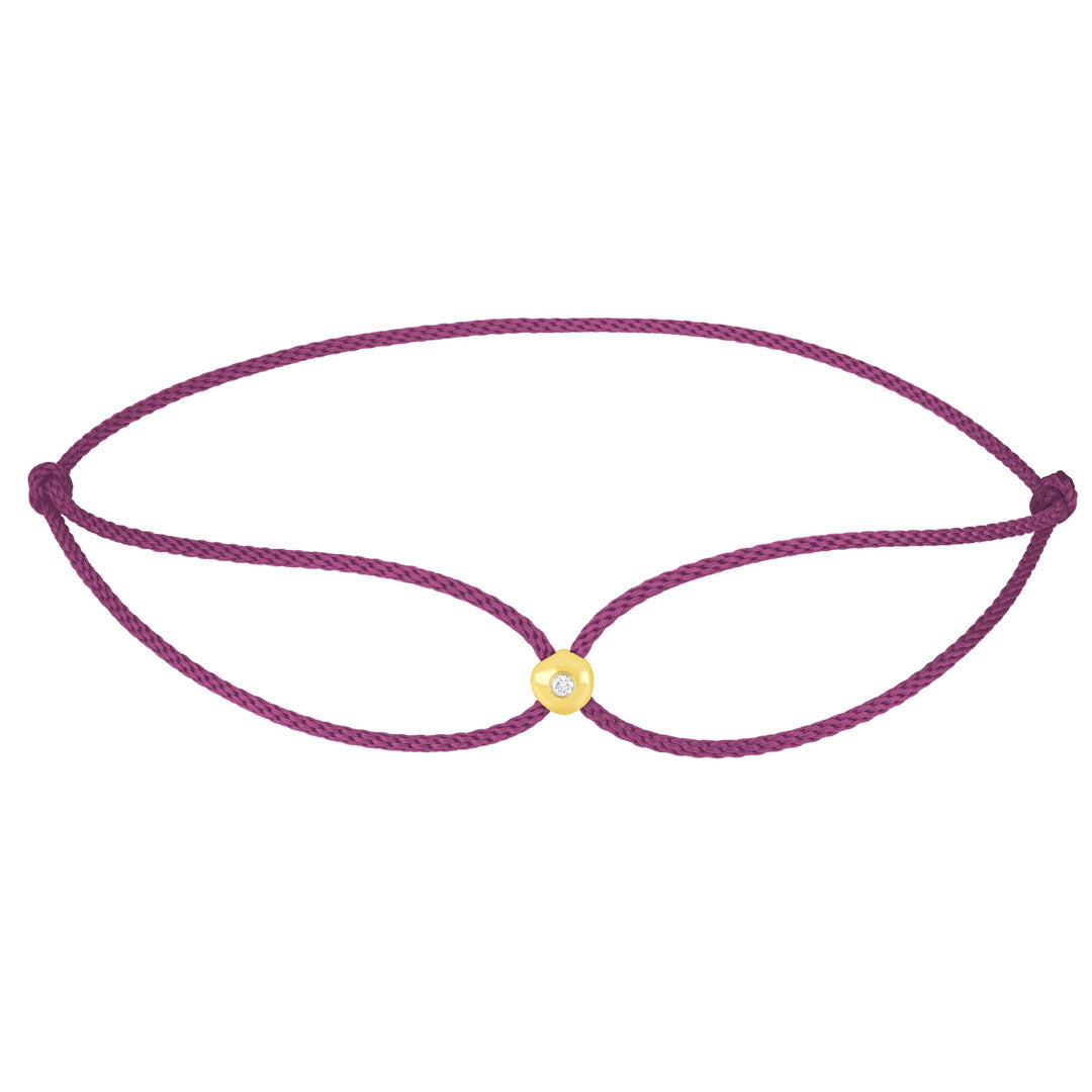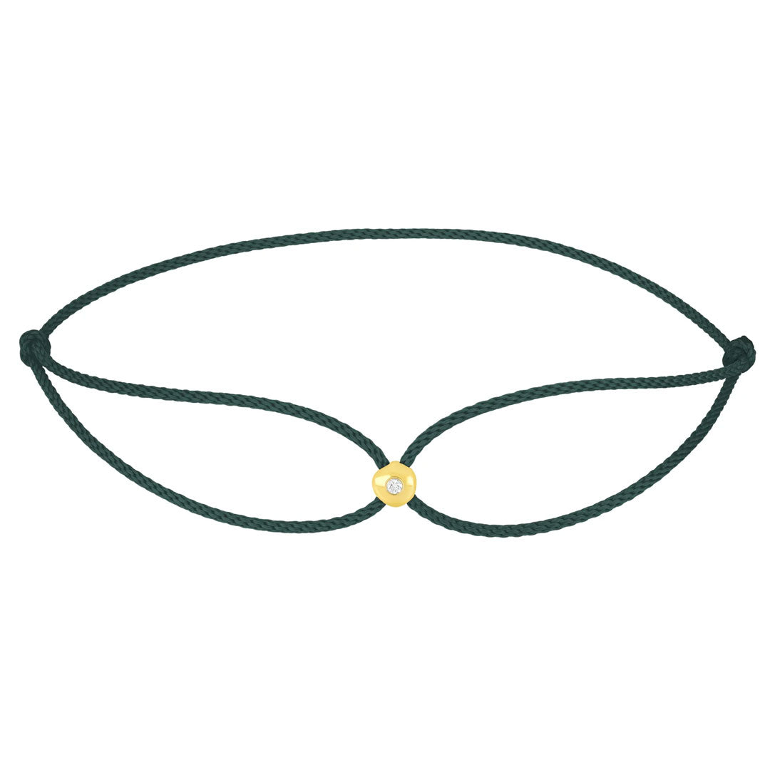 Dark green/plum/sky blue coloured cord loops around a delicate bezel-set diamond. Finished with knotted ends for easy, adjustable sizing, this bracelet styles effortlessly into your everyday wrist stack.