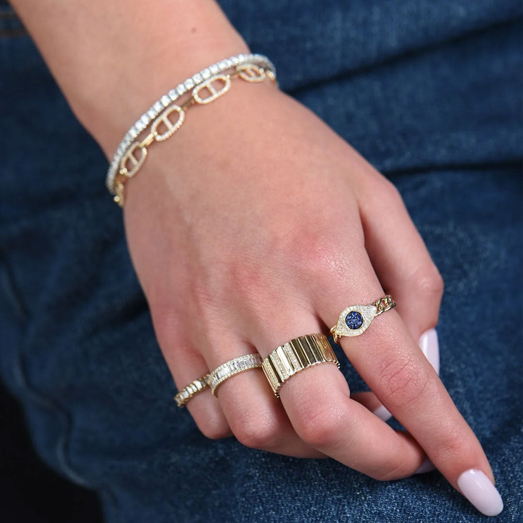 14K Gold Diamond and Sapphire Evil Eye Cuban Link Ring