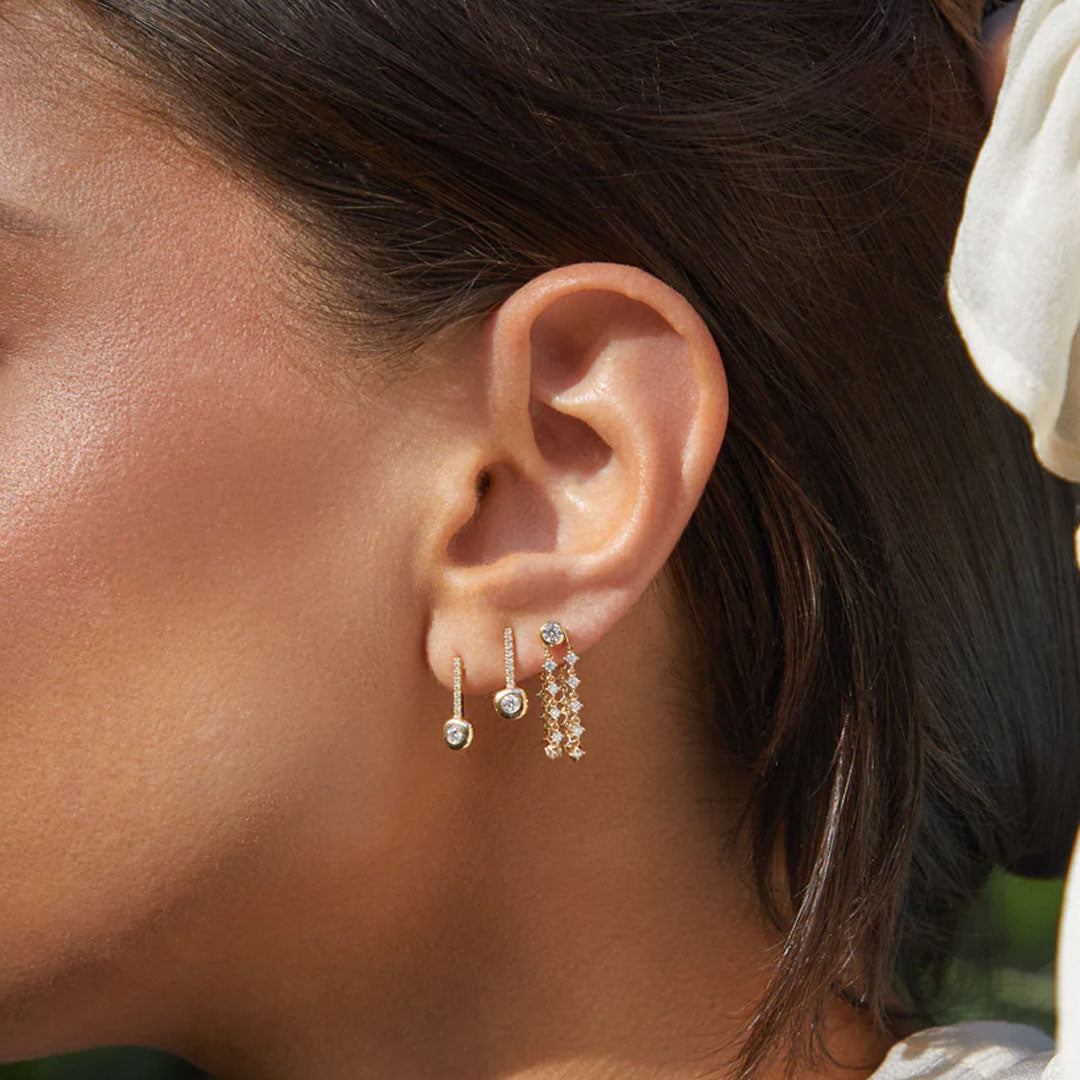 Your new favorite everyday earring. The Diamond Pillow Bar Studs feature a vertical pavé diamond bar finished with a pillow-shaped bezel set diamond. Designed for everyday wear, these modern studs add the perfect touch of sparkle to your look.