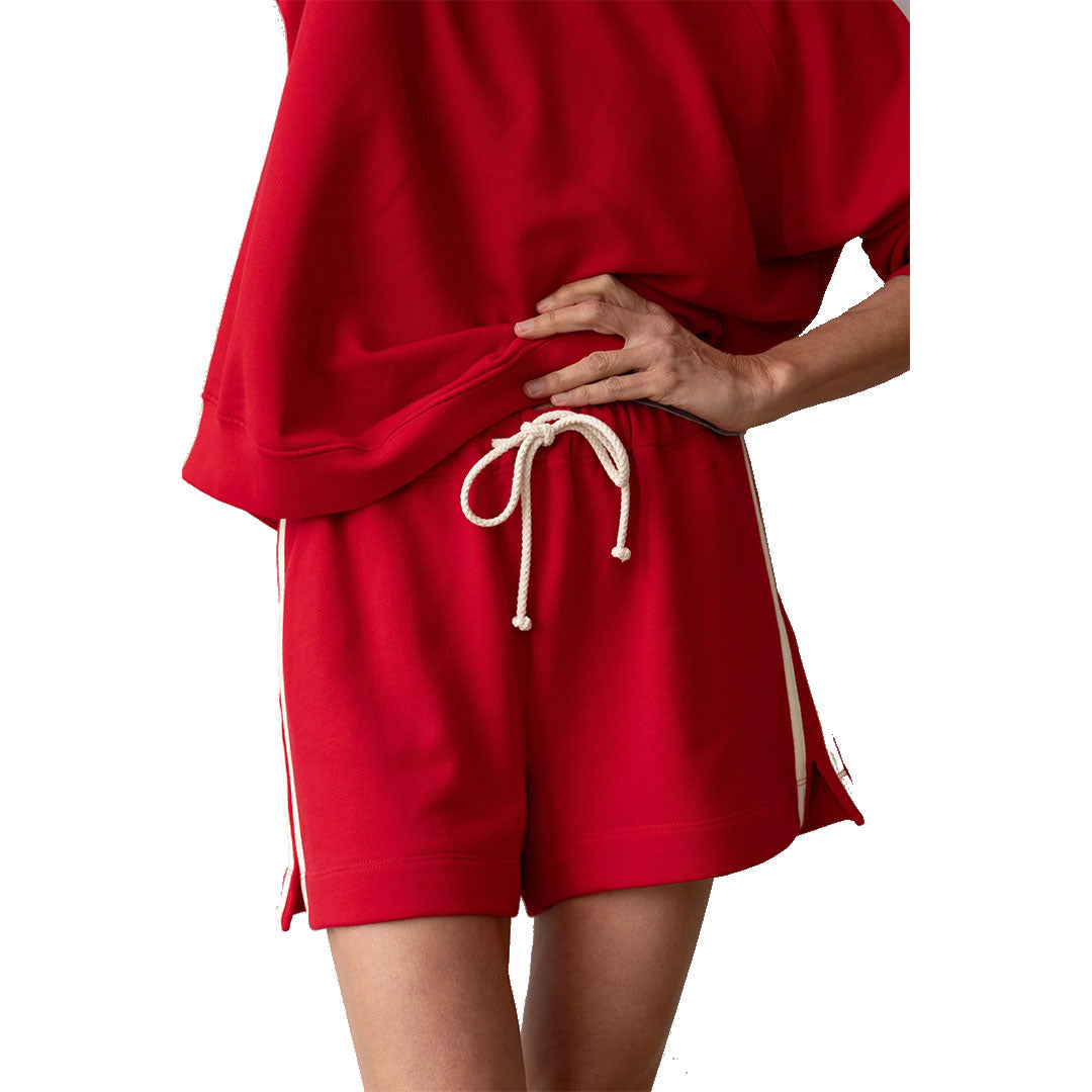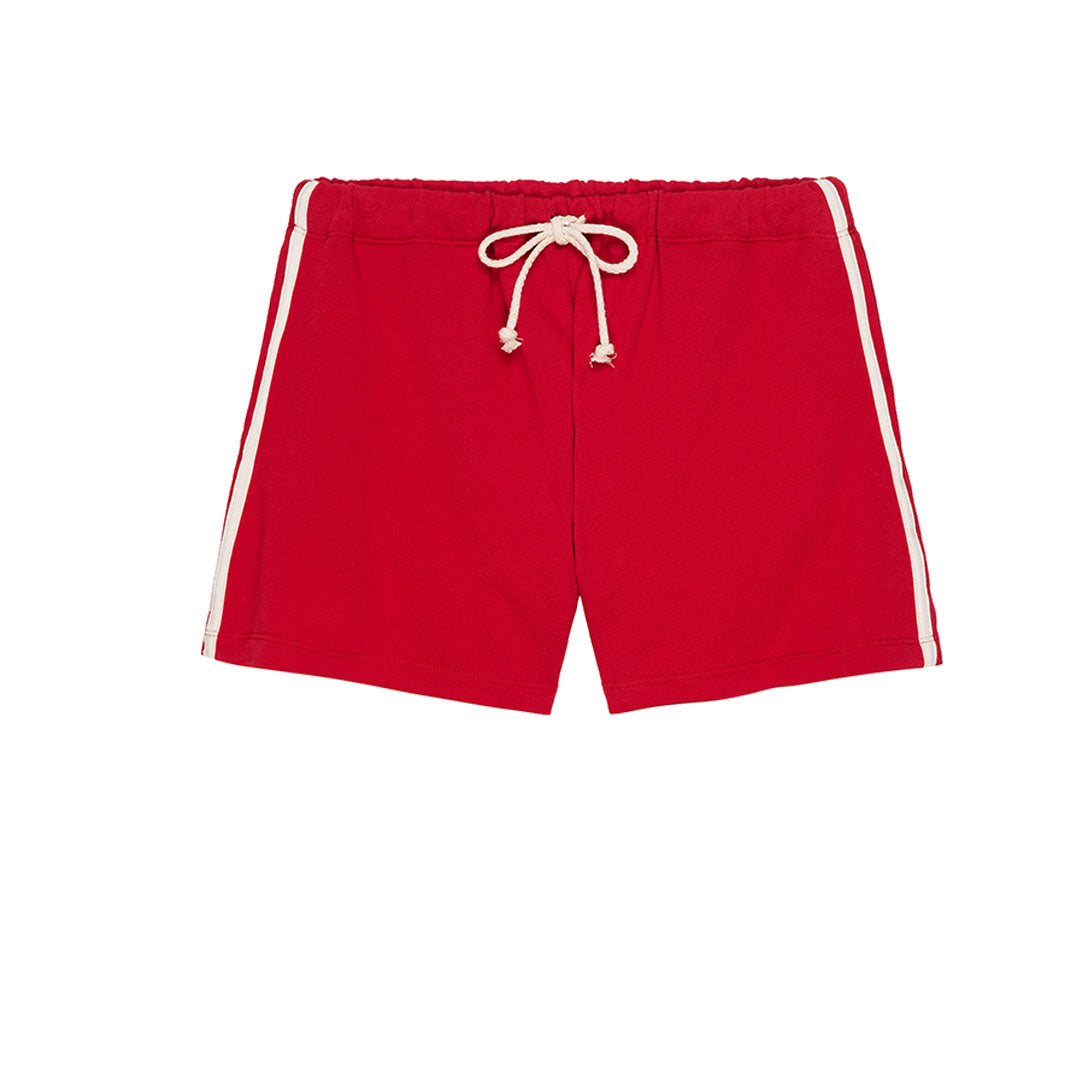 The Stripe Eco-Terry Short is crafted with 100% Organic Cotton, featuring a drawcord waist, side pockets and double stripes on each leg.