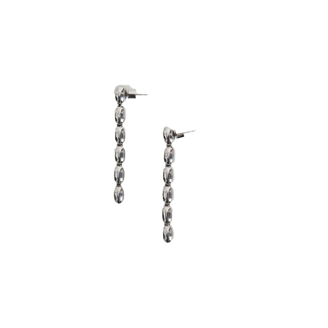 Composed of elongated, twisted beads that cascade gracefully, these drop earrings offer a sculptural silhouette with subtle movement and shine.