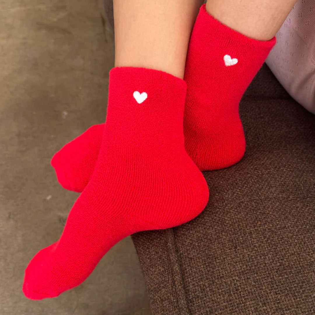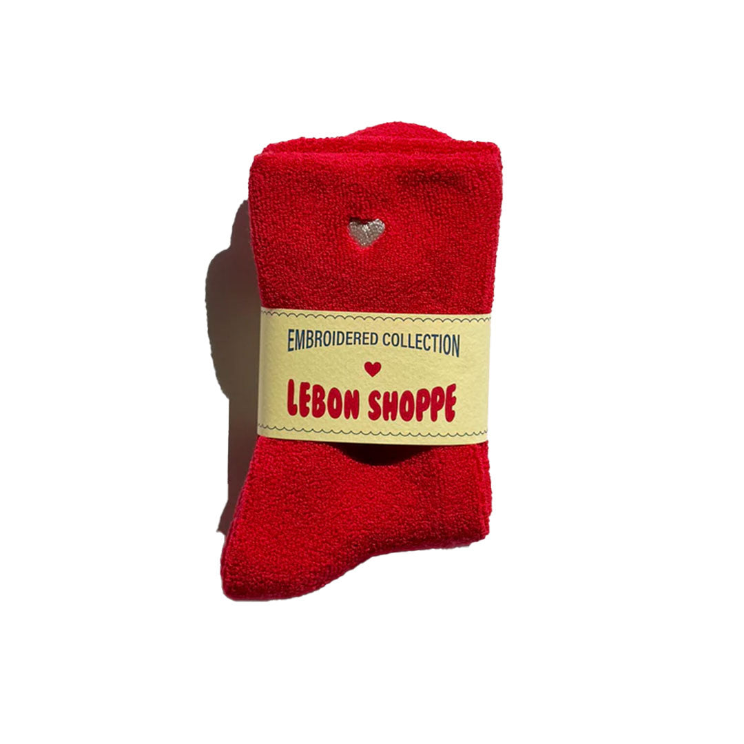 Like walking on clouds! These are hands down the comfiest and cutest socks to wear all year long. Made from a fluffy, terry cotton blend yarn that is breathable and unique. While the exterior is fluffy, the interior is smooth and airy. Now finished with an embroidered ankle detail for a little extra charm. Pair them with your favorite clogs or slides and enjoy the extra cushion.