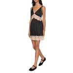 The Ethel mini dress features a plunging v-neckline, adjustable straps, and a subtle floral motif throughout. Finished with delicate lace trim and a mini silhouette, it exudes effortless romance and feminine charm.