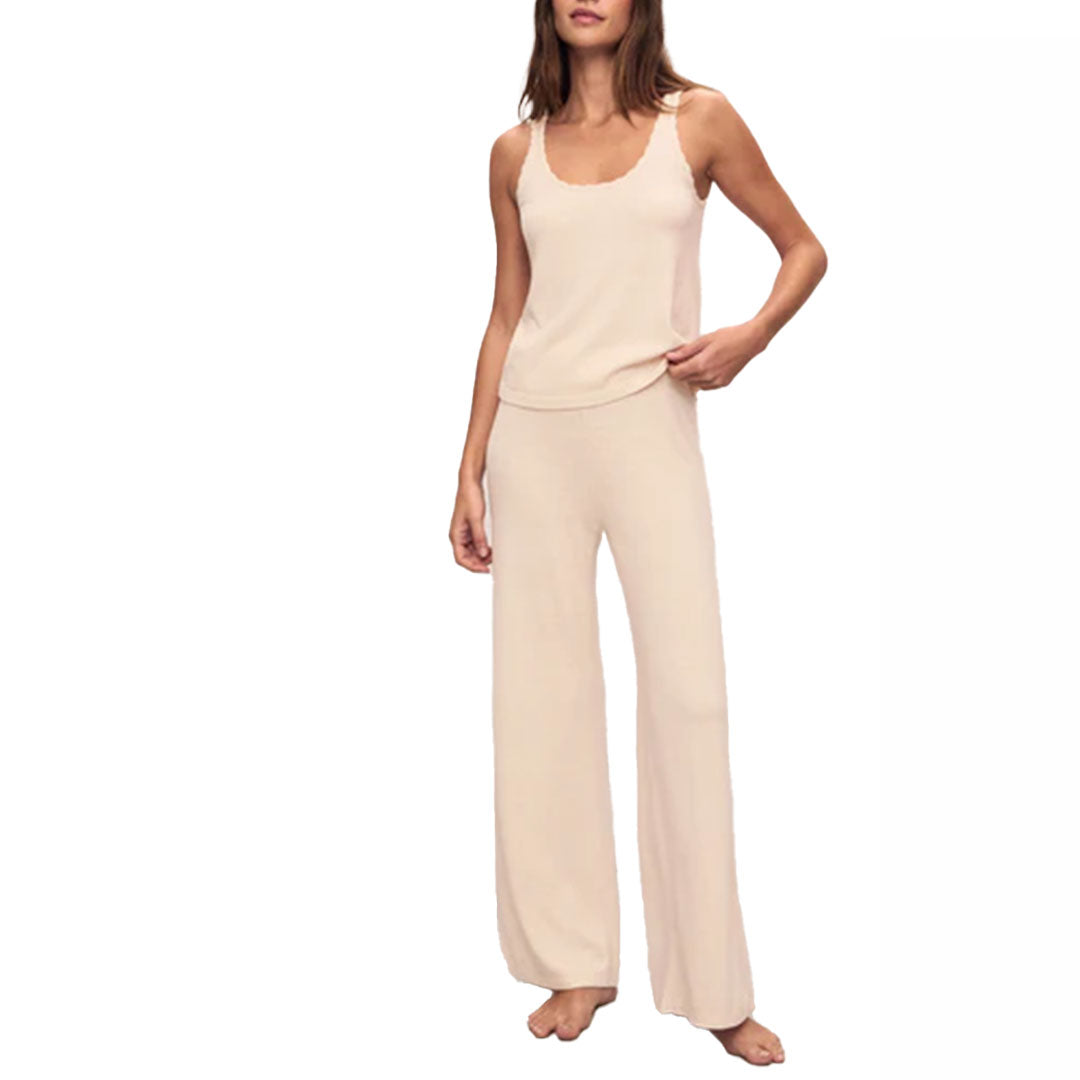 For staying in and heading out. Made from a cotton blend and Naia™ Acetate, a branded fiber responsibly sourced from sustainably managed forest. This true-fit, bra-friendly tank features a scoop and tonal whipstitch detail. Pair it back with Ebejery's Fine Gauge Cardigan and Pant for a soft head-to-toe look.