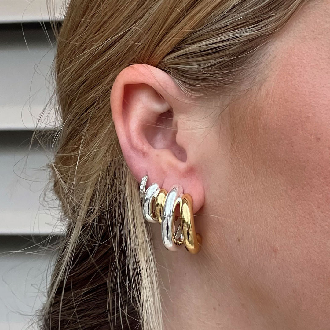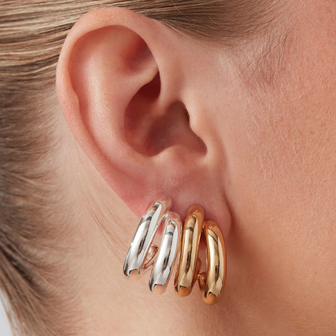 Discover JB's most talked-about earrings. Dramatic and voluminous, this custom design creates the illusion of two earrings stacked together, with a new flat disc backing for additional support. As seen in VOGUE, Marie Claire, WHO WHAT WEAR, Byrdie and GMA. Finished in high-polish silver.