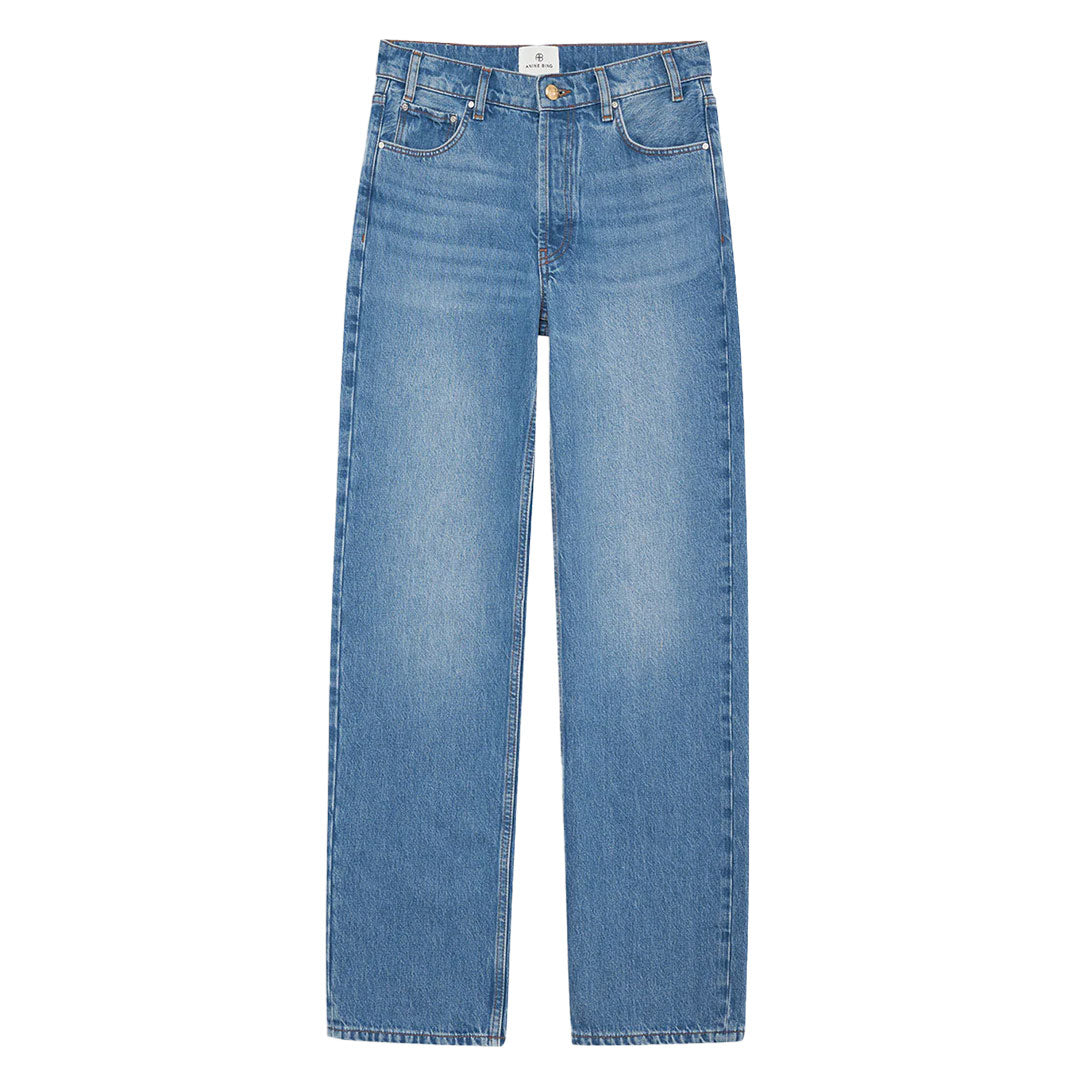 The best-selling Gavin Jean updated with a full-length hem. This boyfriend-inspired silhouette is cut from a midweight, rigid organic cotton denim blend in a medium blue wash. Finished with gold hardware, a coordinating tack button with ANINE BING engraving, and clean-edge hem.