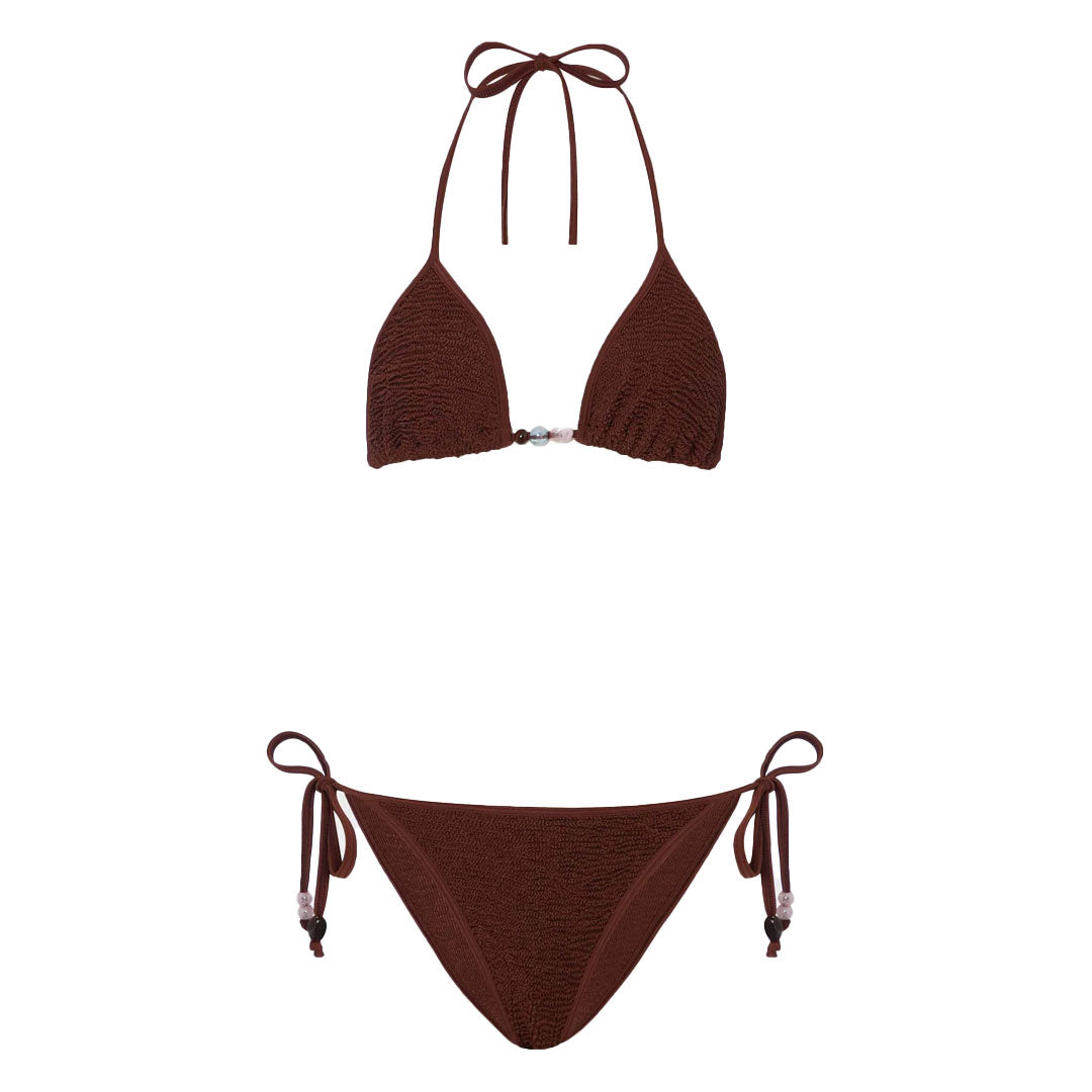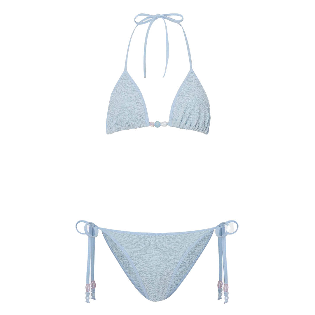 It's here, the original Hunza G triangle bikini now with added beaded detailing. This versatile classic has an adjustable neck and side ties so you can style it your own way. Your new favourite bikini.
