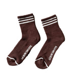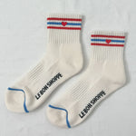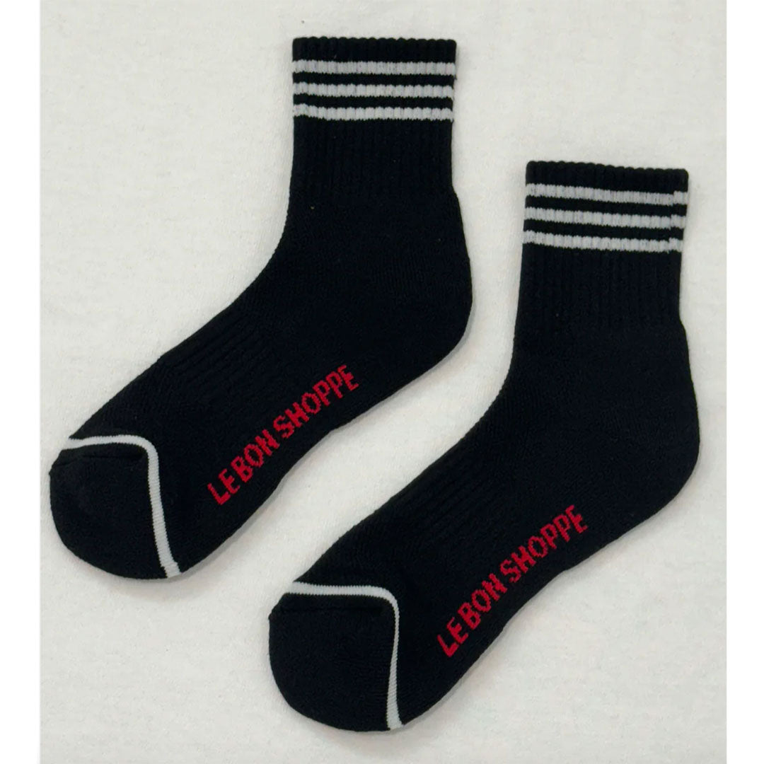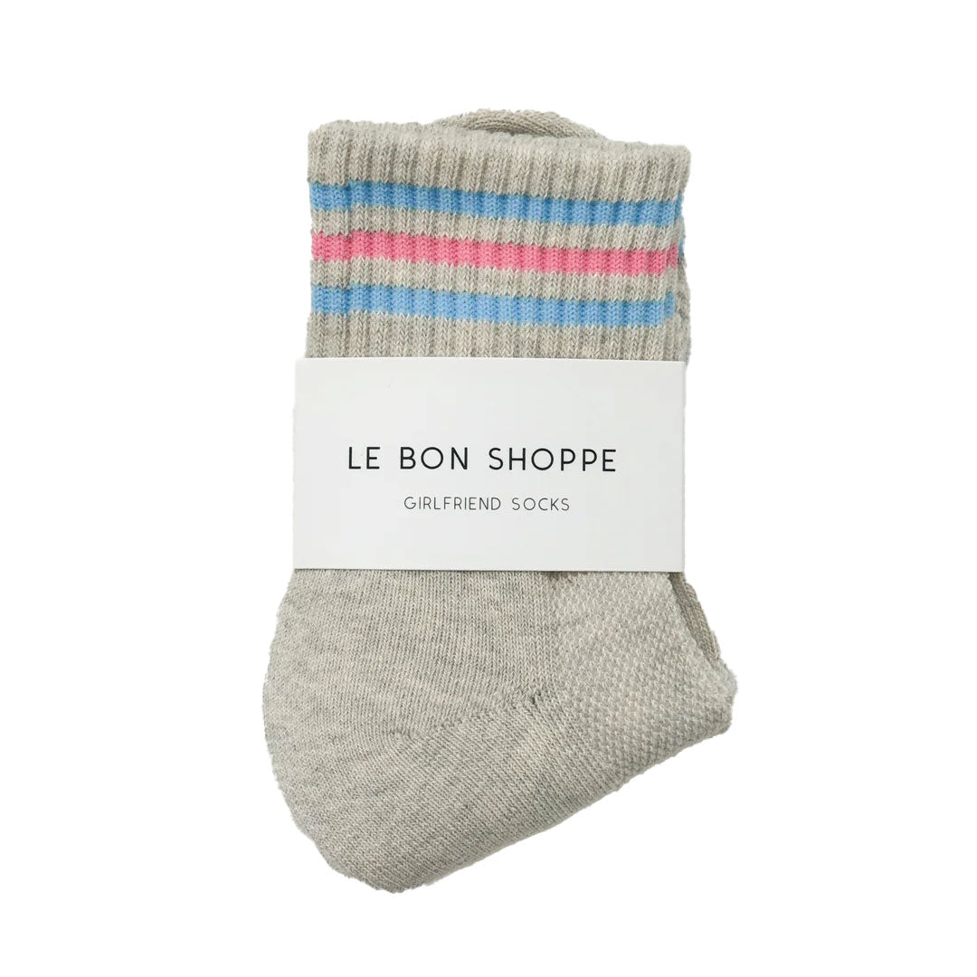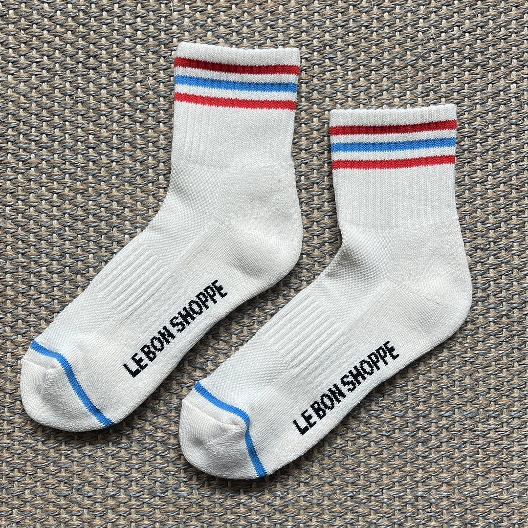The Girlfriend Socks is the cool crew version of our original bestseller and classic Boyfriend Socks. These beauties feature a triple contrast stripe at the opening and a shorter classic crew sock length. She is a universally quintessential sock and especially flattering for our petite ladies.