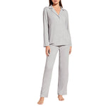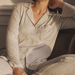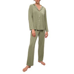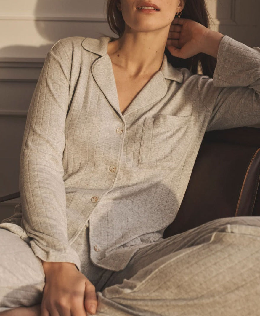 The iconic Gisele styles you love, now in a new textured rib. Made from TENCEL™ Modal fibers and a touch of spandex, this wide ribbed fabric is verified by OEKO-TEX® Standard 100, meaning it’s dyed with safe and non-toxic dyes. Designed for your best sleep yet, this set has a button down top with a notch collar and low-rise straight leg pant with an elastic waistband and tortoise colored buttons. Layer on the softness with a robe or pair lightweight Pima intimates underneath.