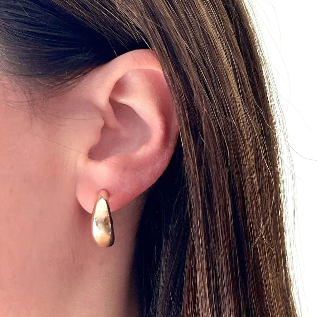 The Gold Jumbo Dome Hoop Earrings combine shapely style and lightweight design. Made from hollow 14k gold, these sculptural hoops elevate your look without weighing you down.