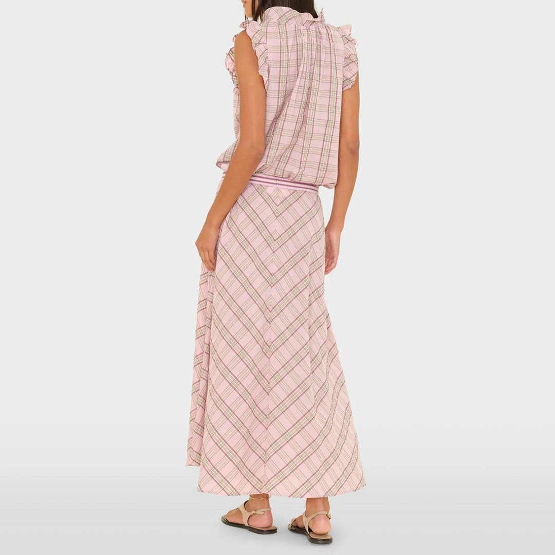 Plaid on Plaid. Hattie is new this season in our vibrant cotton plaid. This A-line maxi skirt features a contrast striped elastic waistband.