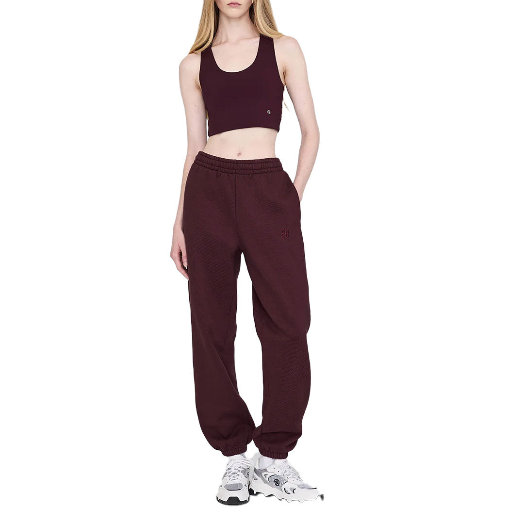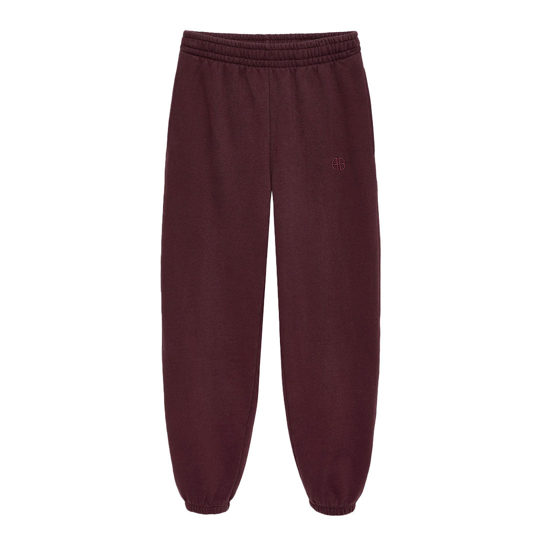 The Karter Jogger is a relaxed-fit sweatpant made from a heavyweight cotton fleece in a dark burgundy wash. This style features a tonal ANINE BING monogram embroidered at the wearer's left thigh and side seam pockets. Complete with ribbed elastic encasing at the leg openings and a mid-rise elasticated waistband with a hidden interior drawstring for a customizable fit.