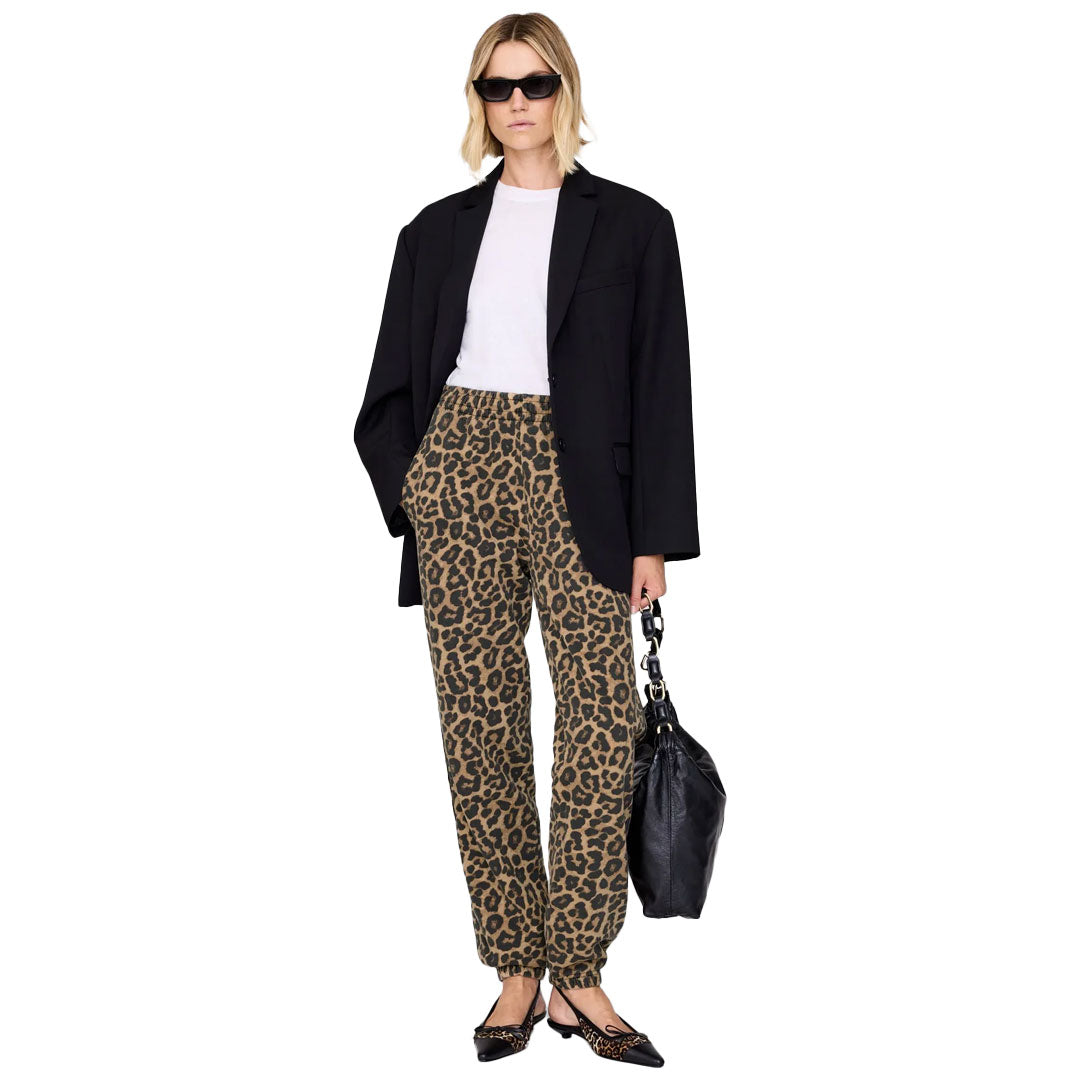 - A relaxed sweatpant made from midweight 100% cotton fleece in black and brown leopard.