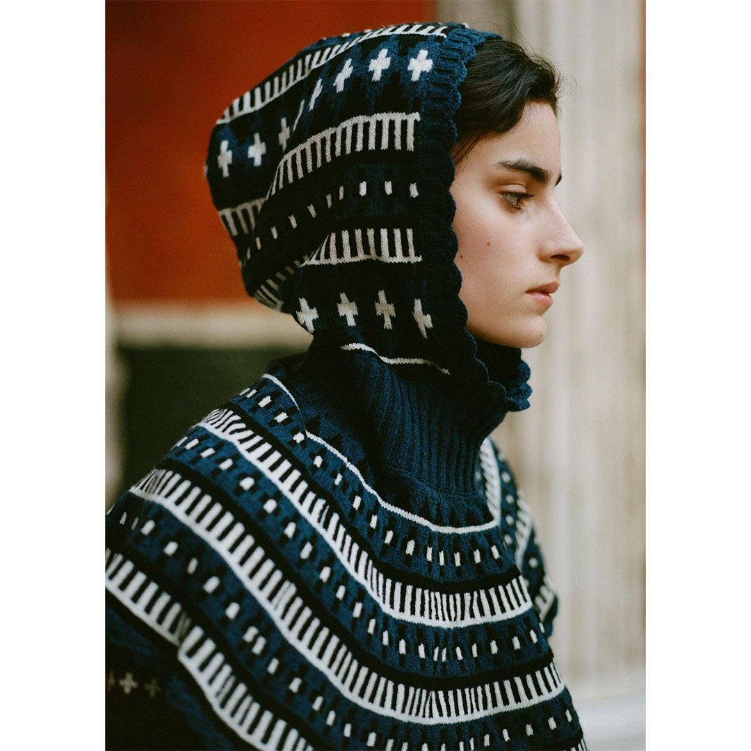 The Linea balaclava features a striking fair isle pattern and a wide collar, blending warmth with standout style. Thoughtfully designed for both comfort and flair, it's the perfect cold weather statement piece.