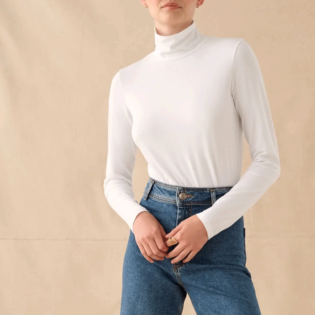 Found: your new go-to transitional layer. The buttery Peruvian cotton modal fabric feels like your softest tee and skims the body just so. We love it layered underneath a cardigan or chunky V neck sweater, but it looks pretty fantastic on its own, too.
