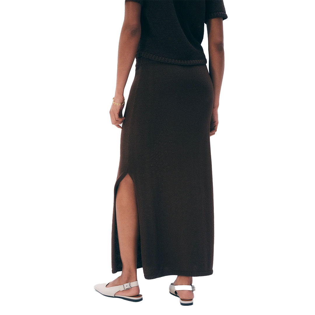 A fluid skirt that's quietly luxurious. Knit from Italian organic cotton tape yarn, this straight-fit jersey midi skirt features a side slit and a drape that moves effortlessly with you.