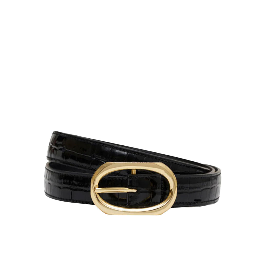 Croco-embossed texture and high-shine finish exudes sophistication. The signature-link buckle, ANINE BING branding, and monogram charm add a touch of exclusivity to this must-have piece.