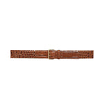 A thick, utility-inspired belt made from 100% leather stamped with faux croco-embossed texture. This modern style features a double-prong roller buckle in gold-tone hardware.