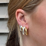 JB's most talked-about earrings in a shrunken size. This custom design wears like a huggie while creating the illusion of two hoops stacked together. Plus, they're micro-light so you won't even feel them on. Finished in high-polish gold.