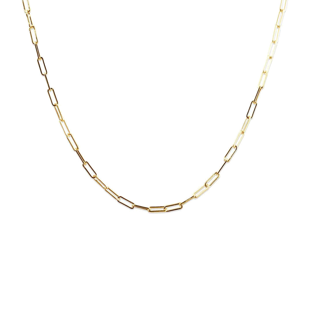 A delicate twist on our signature paperclip chain...This version of our Paperclip Chain looks beautiful layered in with our signature Paperclip Chain, and both of our Chunky Paperclip Chains, it's also gorgeous as a stand-alone necklace.