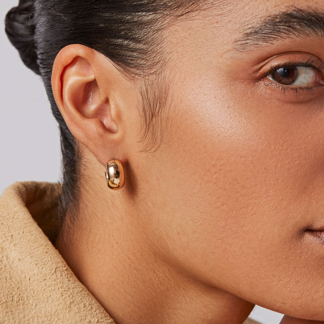 A new, mini addition to the Tome family, these huggie earrings are the perfect touch of high-shine. Plus, they open and close with a hinge, so you'll never have to search for an earring back again. To wear, lift post and gently push into the opening. Then press down until it clicks into place. Finished in high-polish 14k gold.