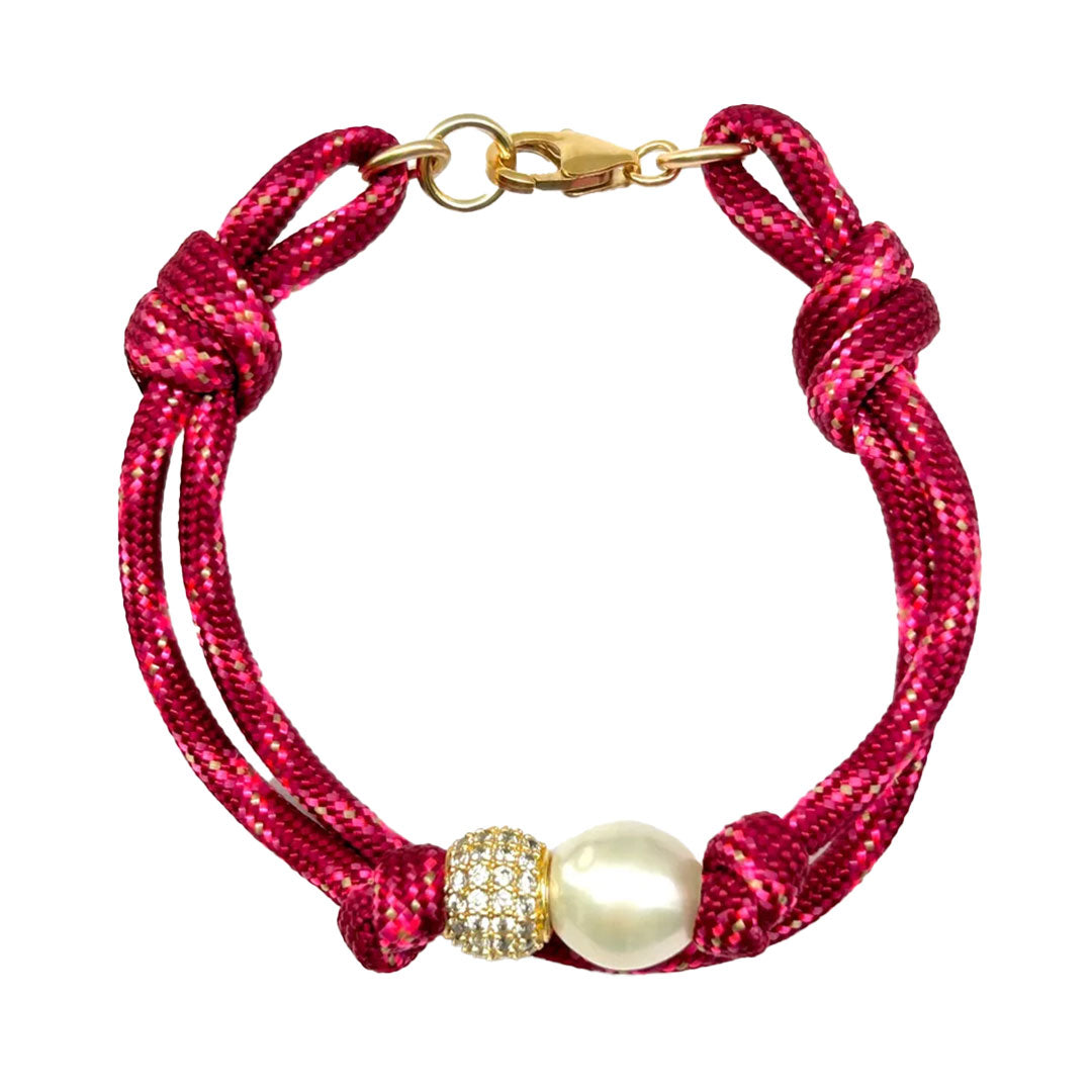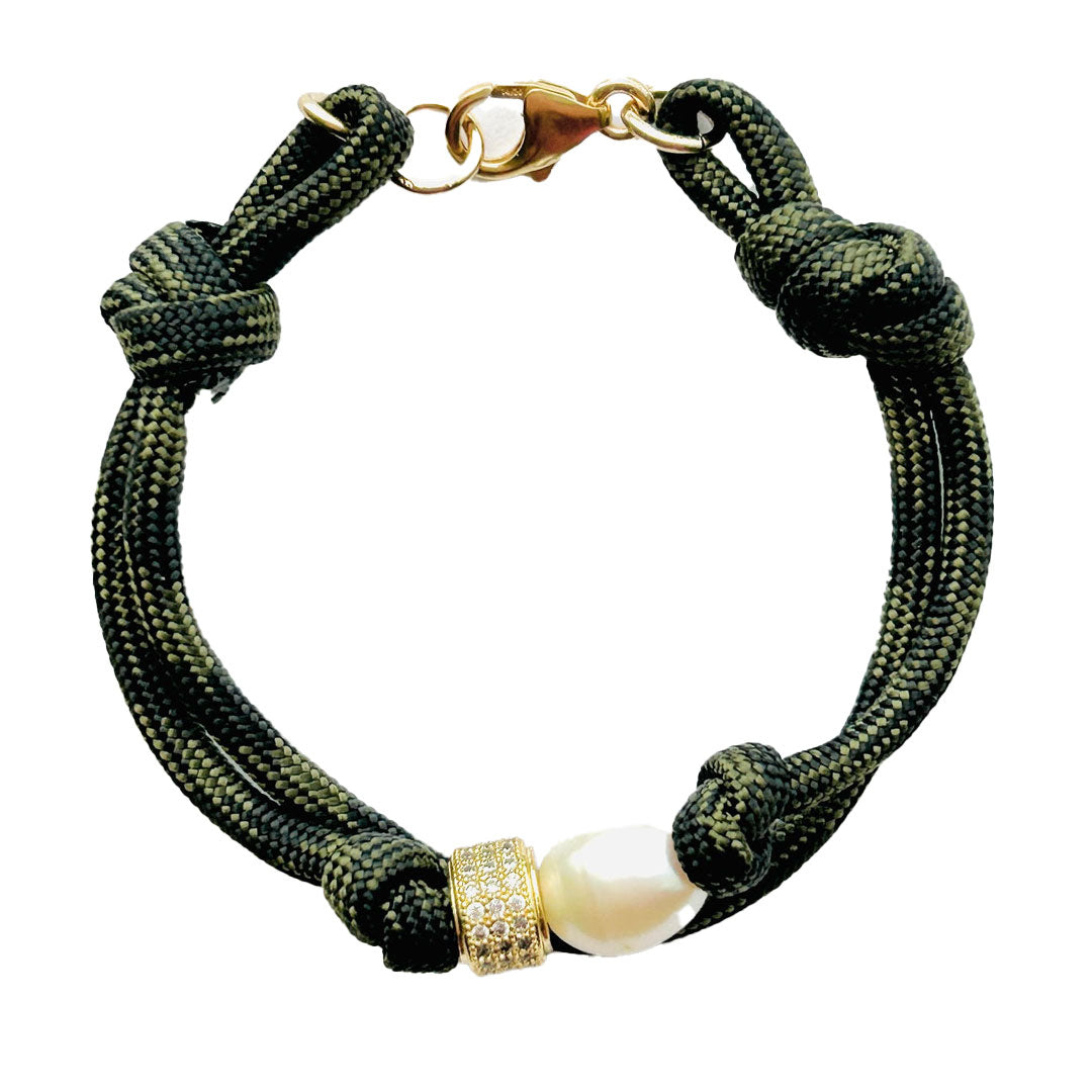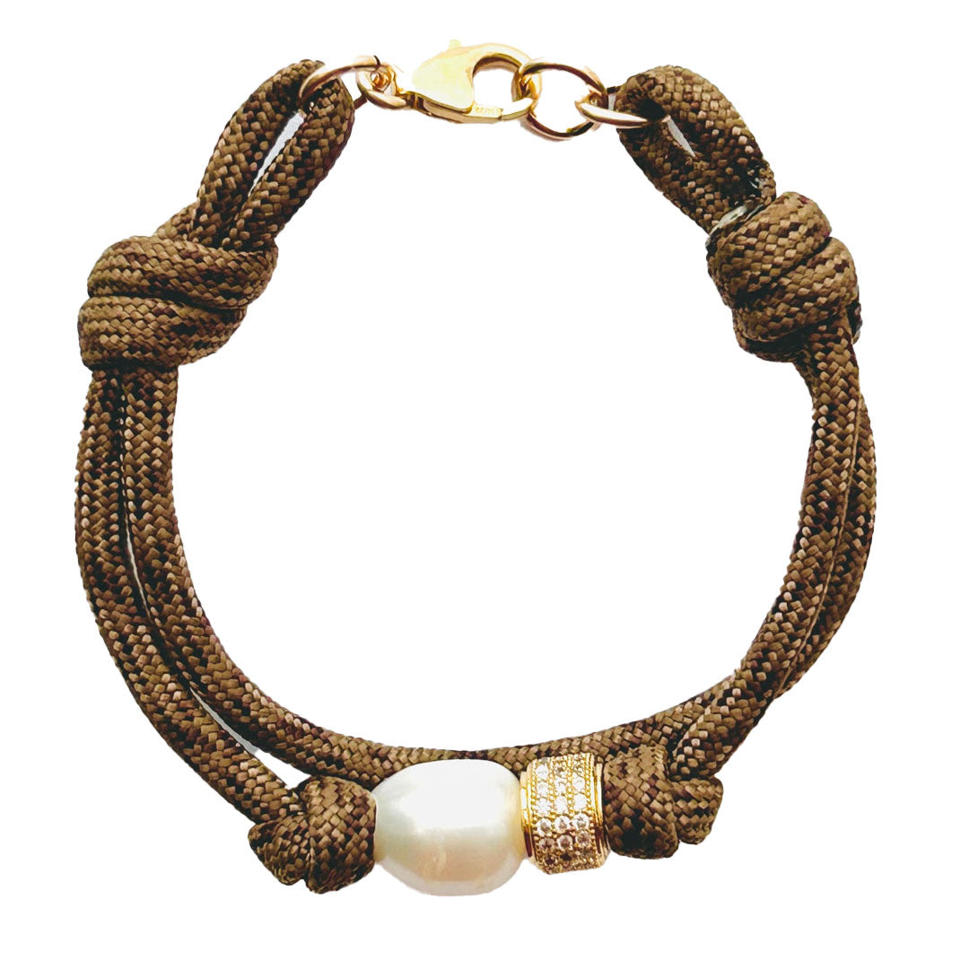 Paracord double bracelet with large freshwater pearl and pave bead. Gold filled clasp.