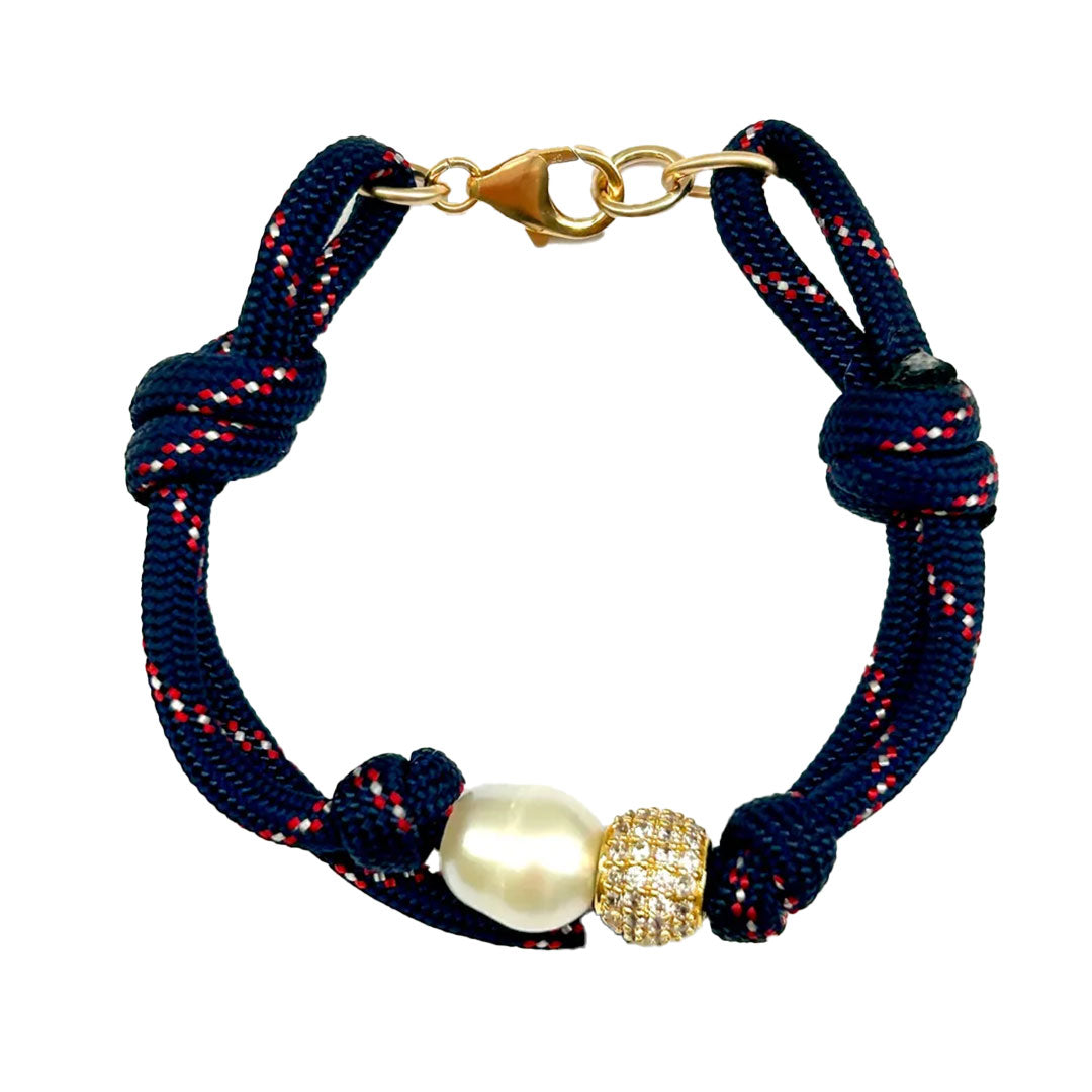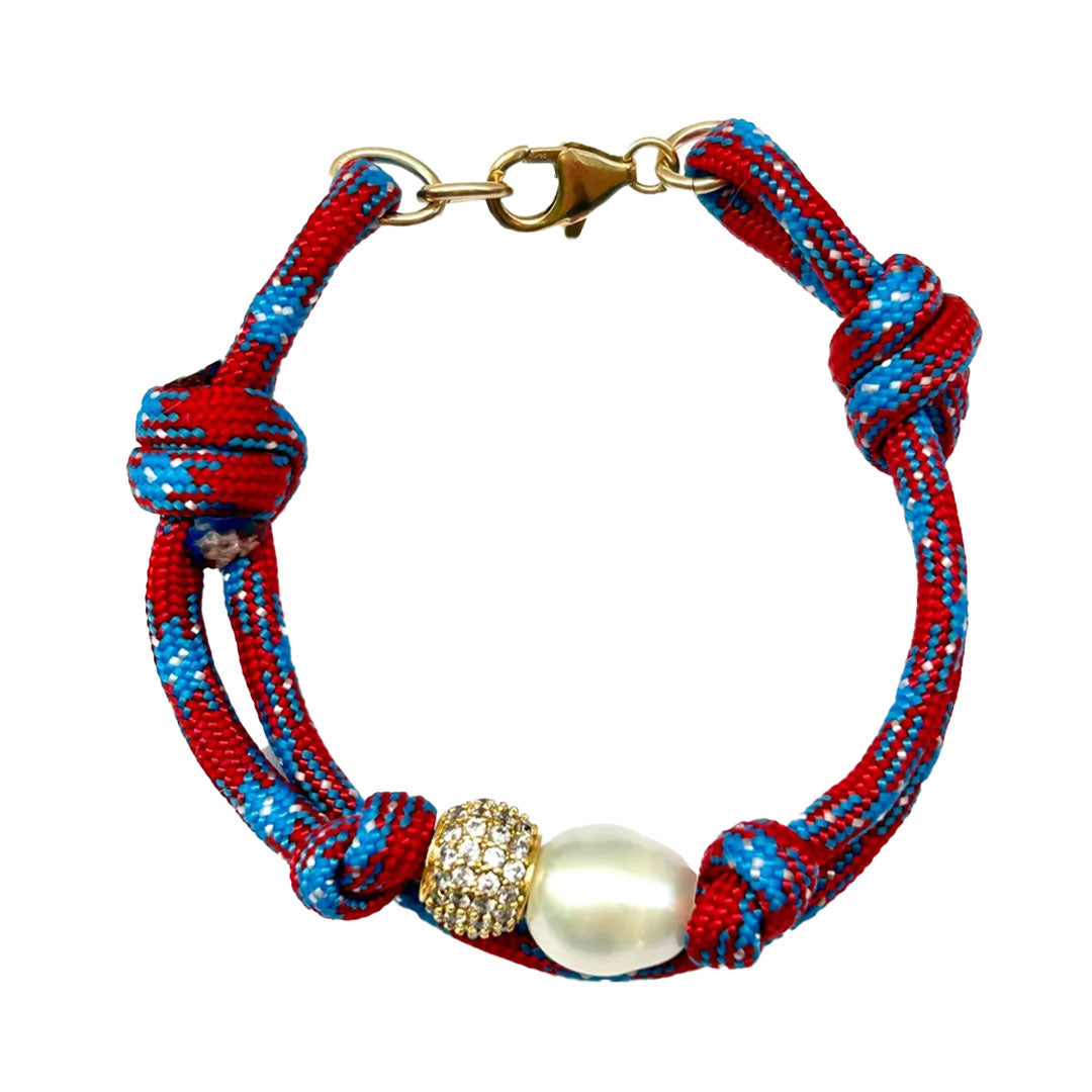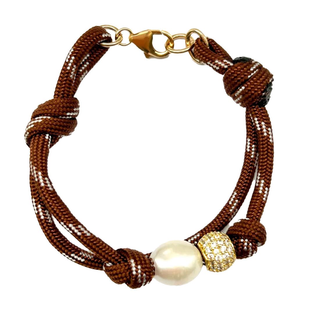 Paracord double bracelet with large freshwater pearl and pave bead. Gold filled clasp.