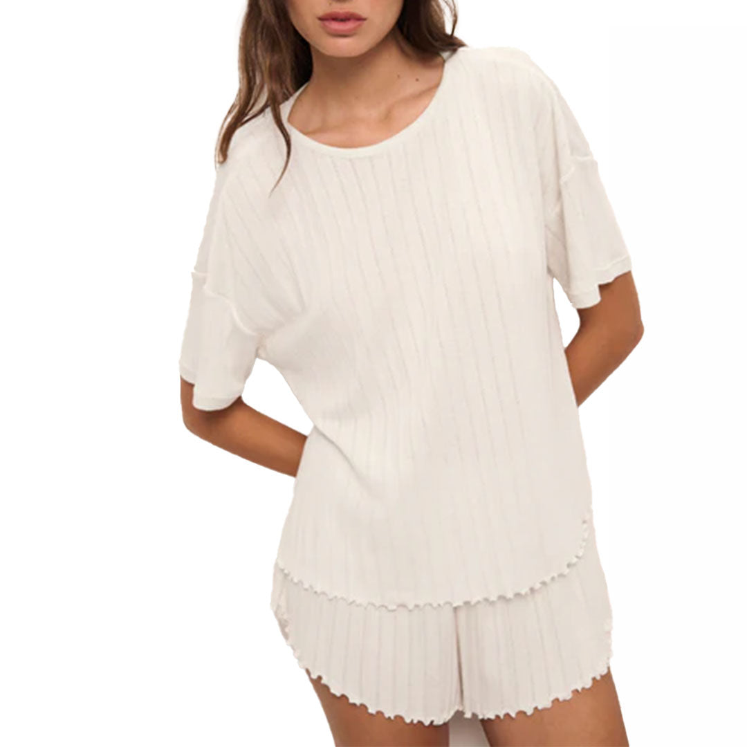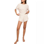 Made from a cotton and TENCEL™ Modal blend, this fabric is verified by OEKO-TEX® Standard 100, which means it was processed without harmful chemicals. This crew neck short sleeve tee features a relaxed fit, dropped shoulder, and lettuce edge hem. Pairs well with Eberjey's Pointelle Short or Pointelle Pant.