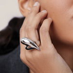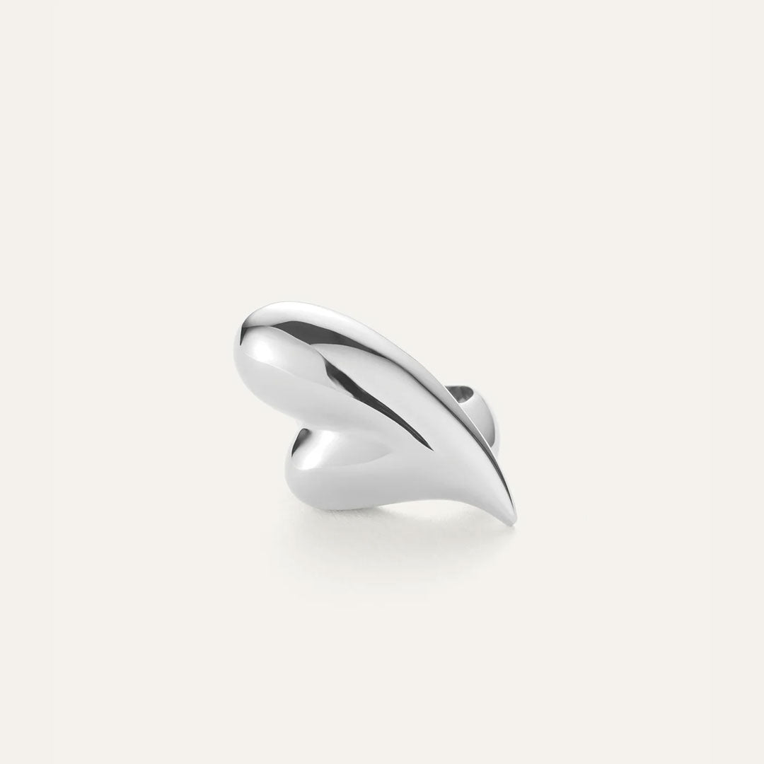 An elongated, voluminous heart melds into the band of a statement ring. This silver/high-polish 14k gold ring is water-resistant, making it the perfect addition to your jewelry box. Finished in high-polish silver/high-polish 14k gold.