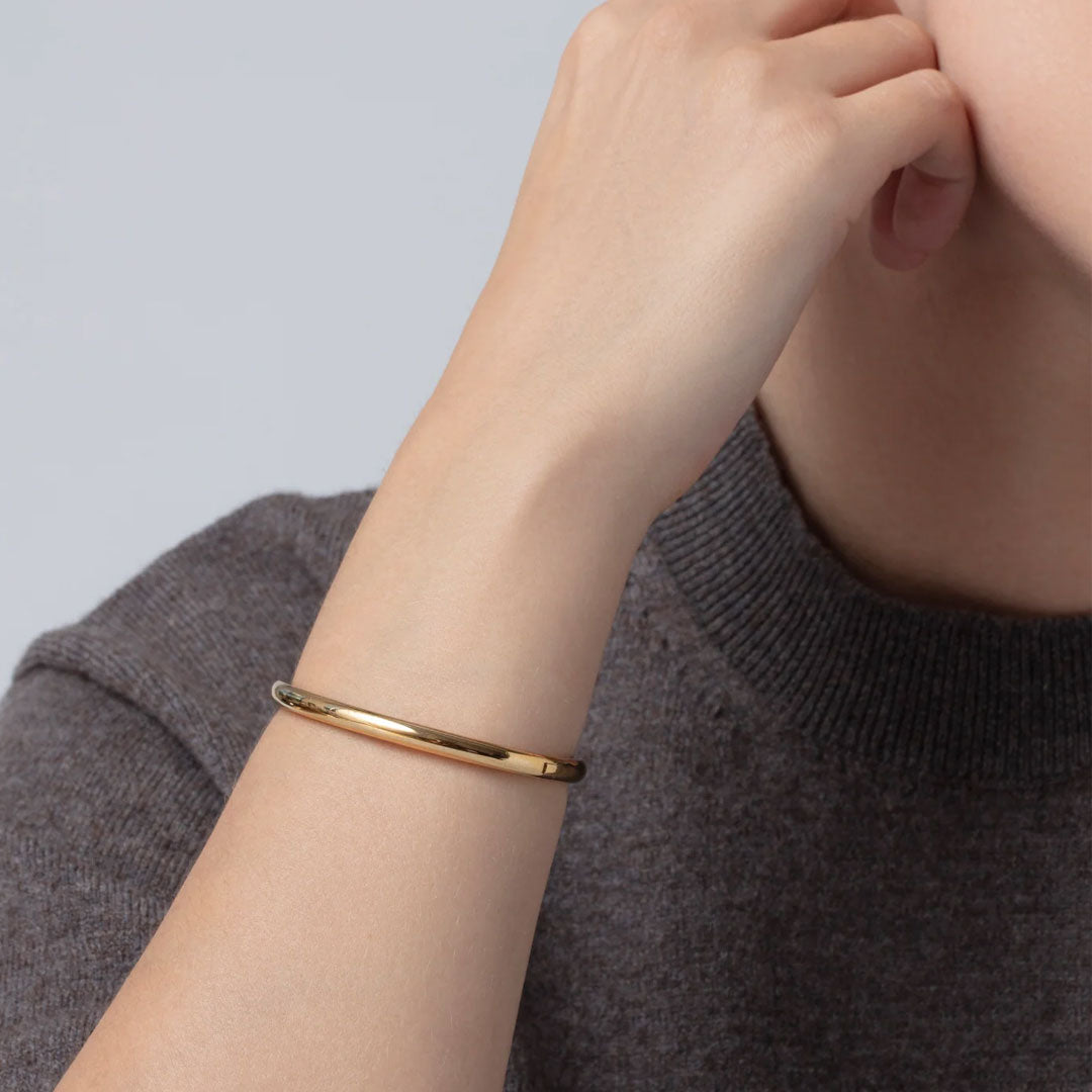 This wear-with-anything bangle is the missing piece in your bracelet collection — wear it on its own, doubled up or mixed in a stack with best selling Dane and Gia. Sleek, modern and water-resistant, you'll be reaching for this starter bangle on repeat. This solid bracelet boasts a flattened interior for comfortable, all-day wear.