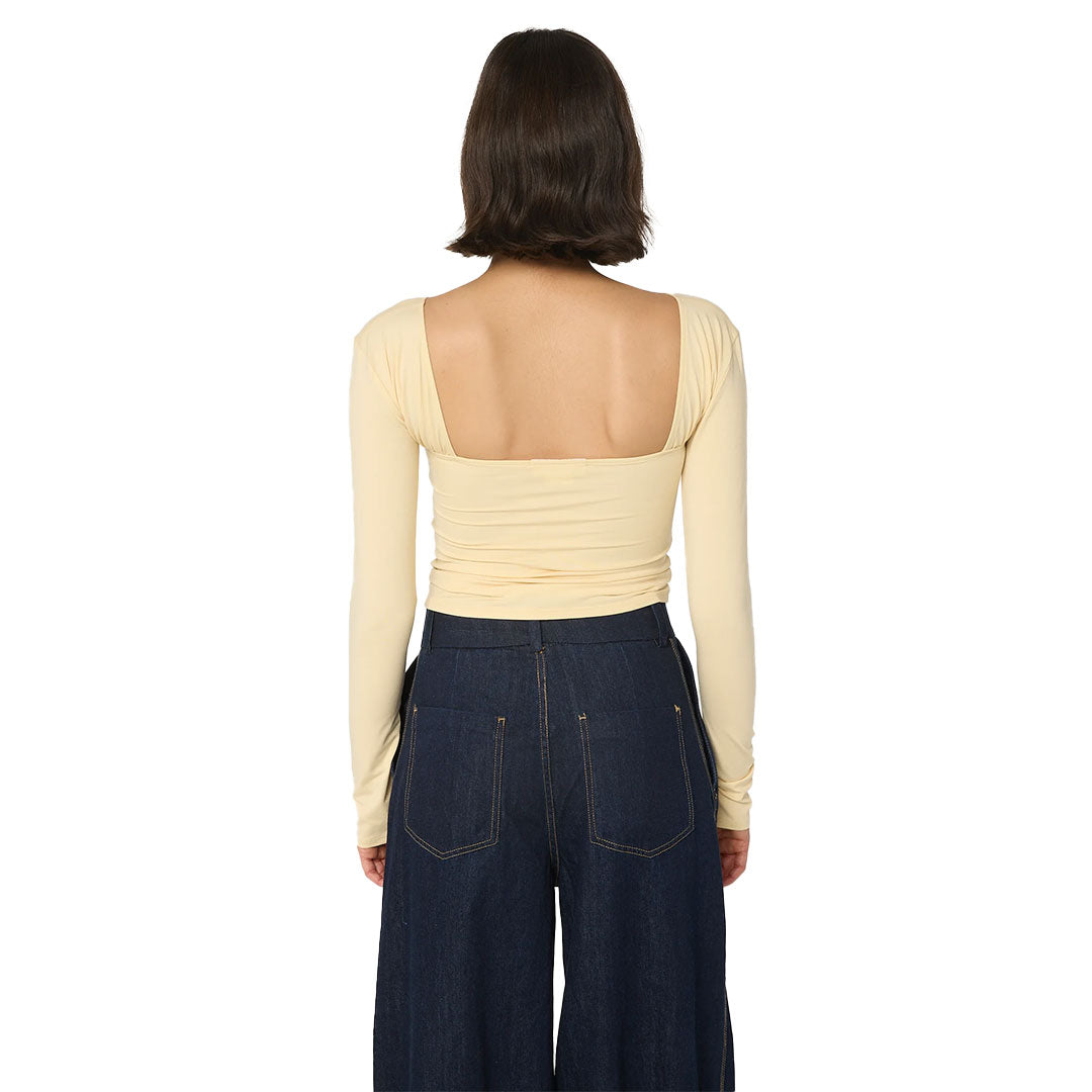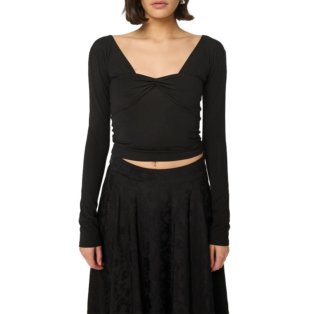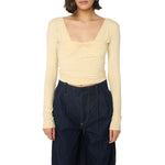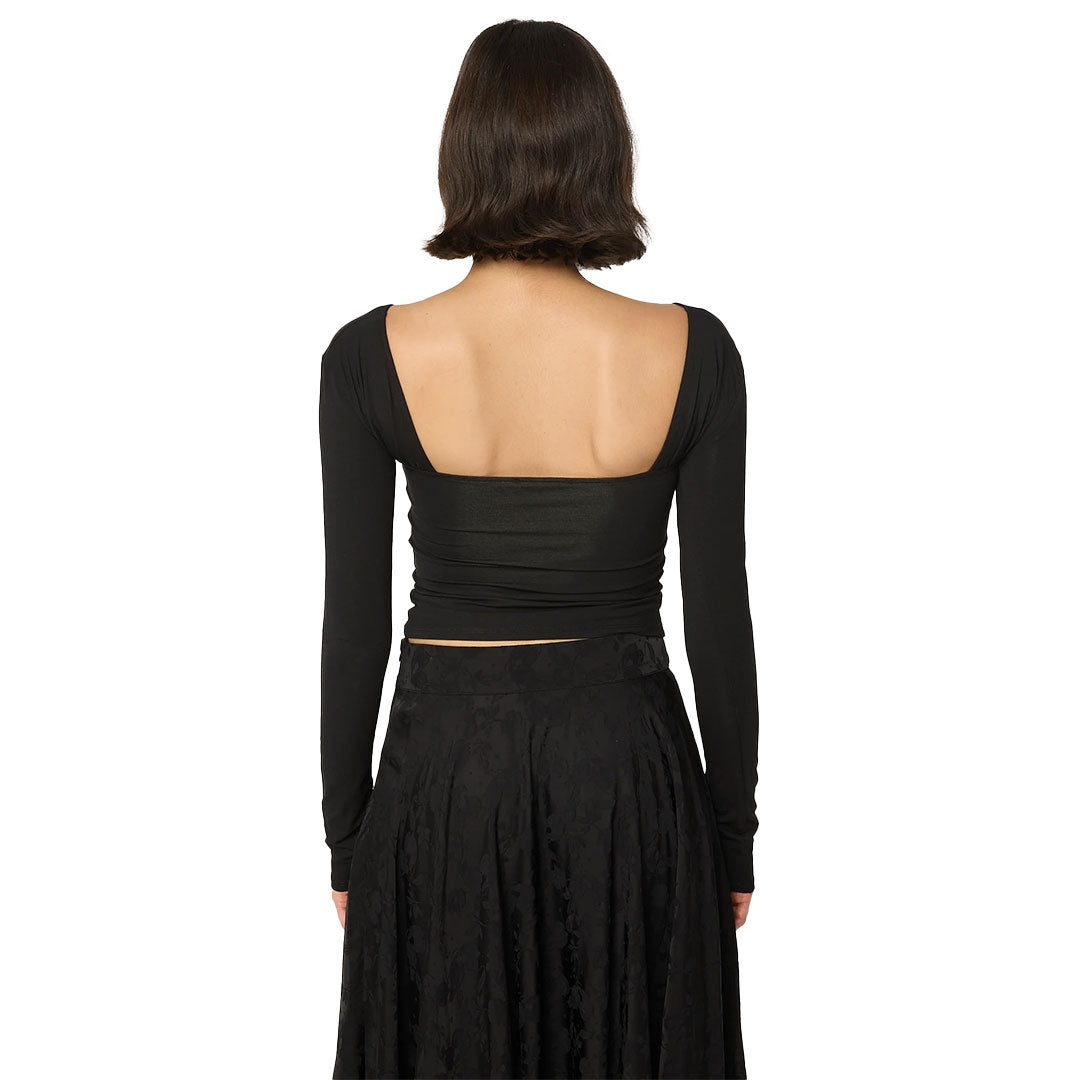 Cut from a mid-weight stretch Cotton-modal blend, the Rian features a straight neckline and delicate pleats at the center front. Pair with vintage denim or with a low cut slip skirt for an effortless look.