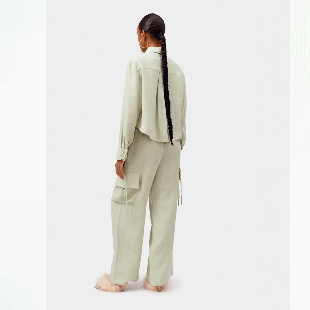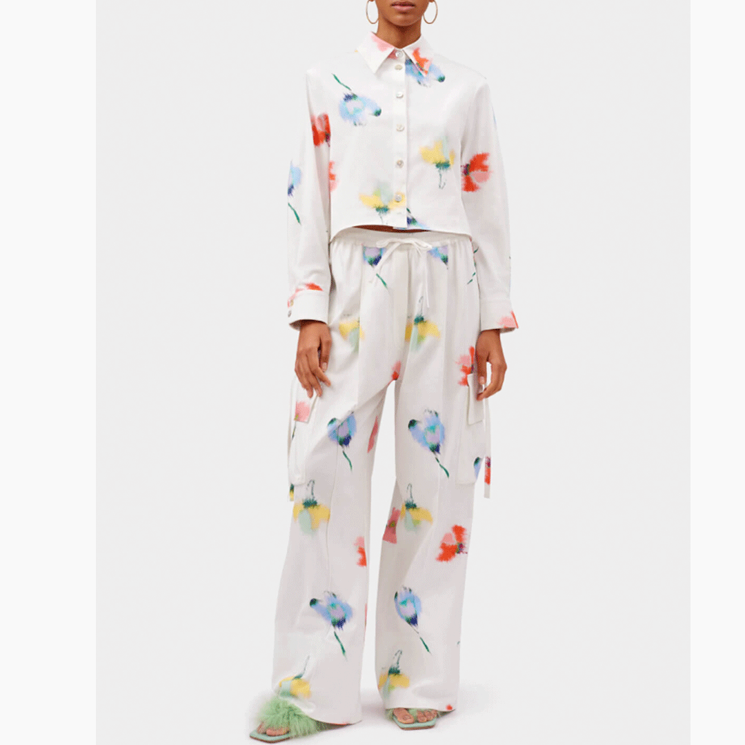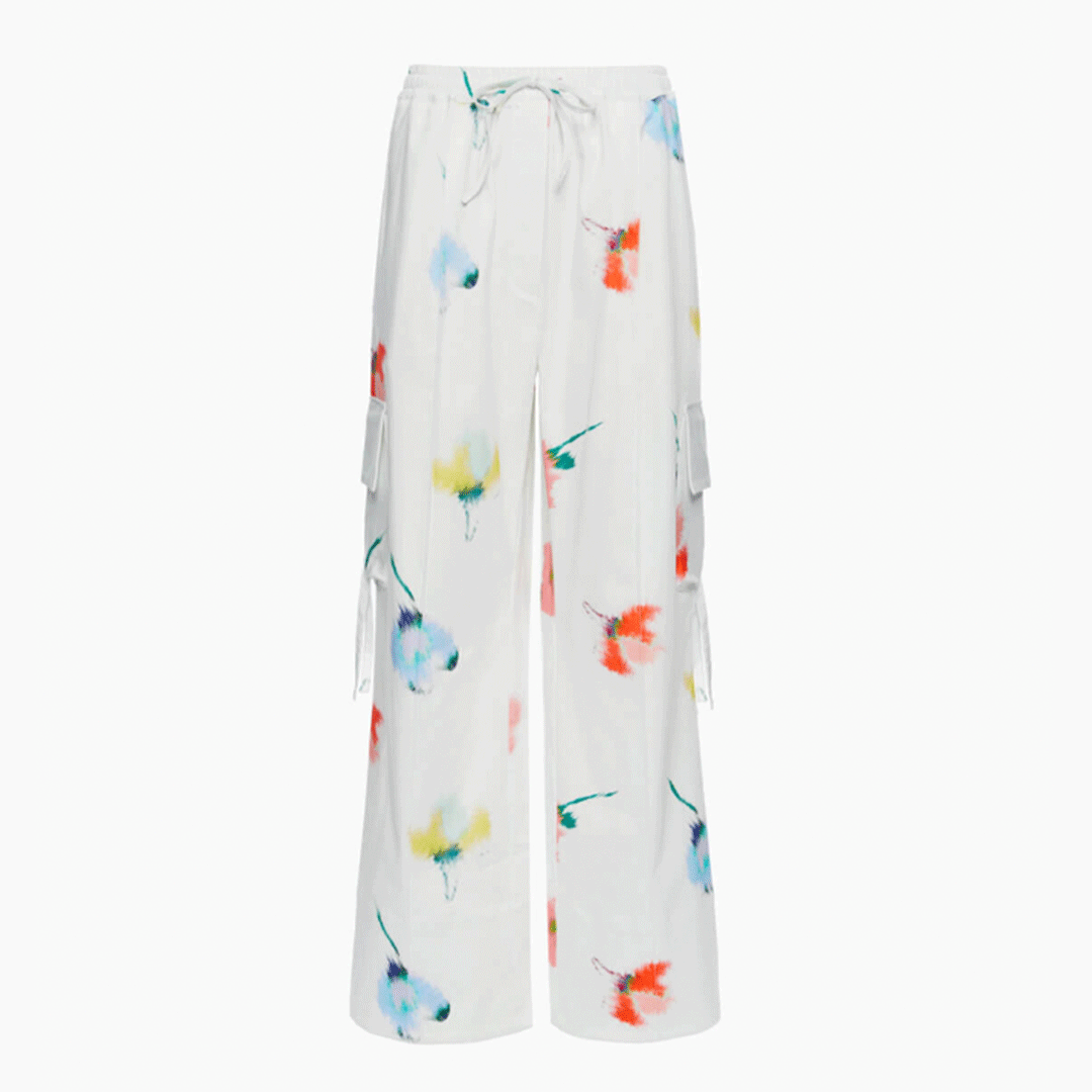 Loose silhouette cotton cargo pants. Featuring an elasticated waist for comfortable fit, side pockets that can be tied, and a wide trim at the bottom. Pair it with a matching Safari Cargo Pants in Flower Print for a complete look.