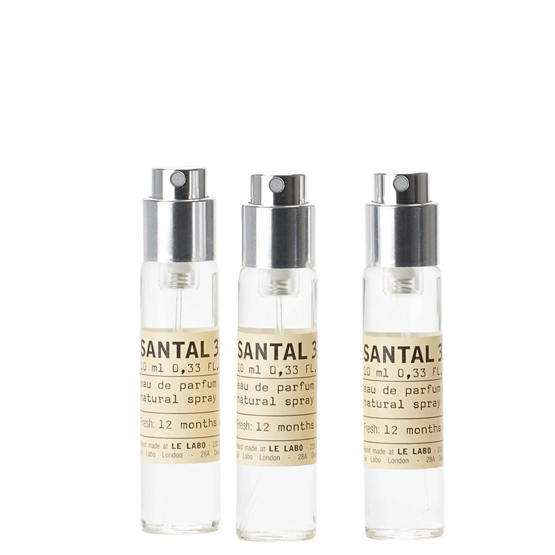 Refill your travel tube with 3 x 10ml (0.33 FL.OZ.) spray bottles of Santal 33.