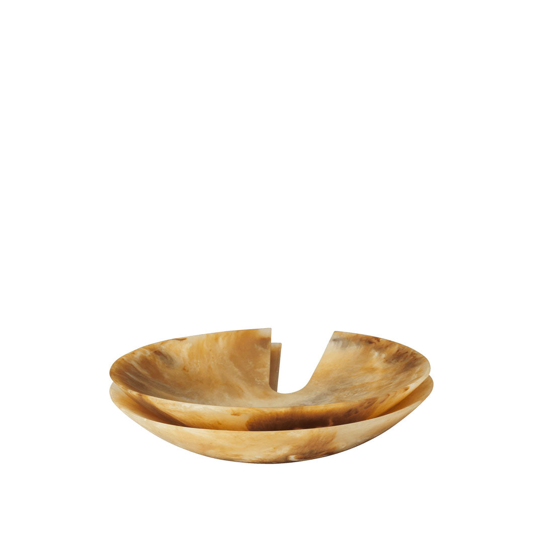 The Sol Salad Servers are a versatile piece of tableware, expertly crafted from solid resin with a marble effect. Their soft, translucent finish subtly varies from piece to piece, making each one uniquely beautiful. The handle-free design allows the server’s surface to function as a natural grip, while the generously sized crescent-shaped bowl, accented with a cut-out detail, enhances serving efficiency.