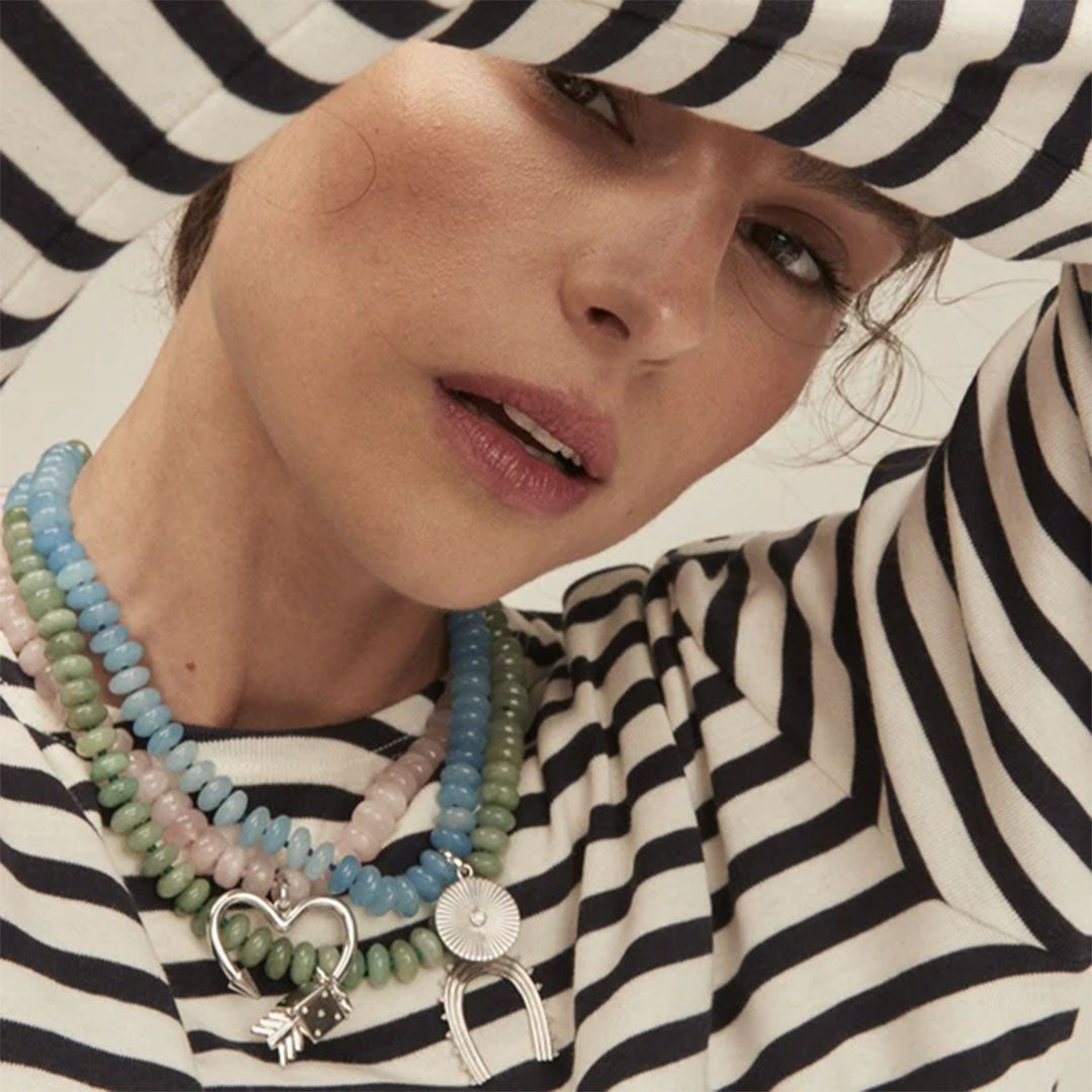 Your charm stack’s new power colour. AR's limited edition necklace is hand-strung by artisans in Los Angeles using green aventurine—a stone known to inspire confidence, courage, and optimism. Whether you wear it solo or style it with your favourite Hinged Charms, it’s an effortless way to bring a pop of colour and good energy to your everyday look