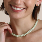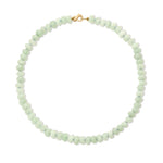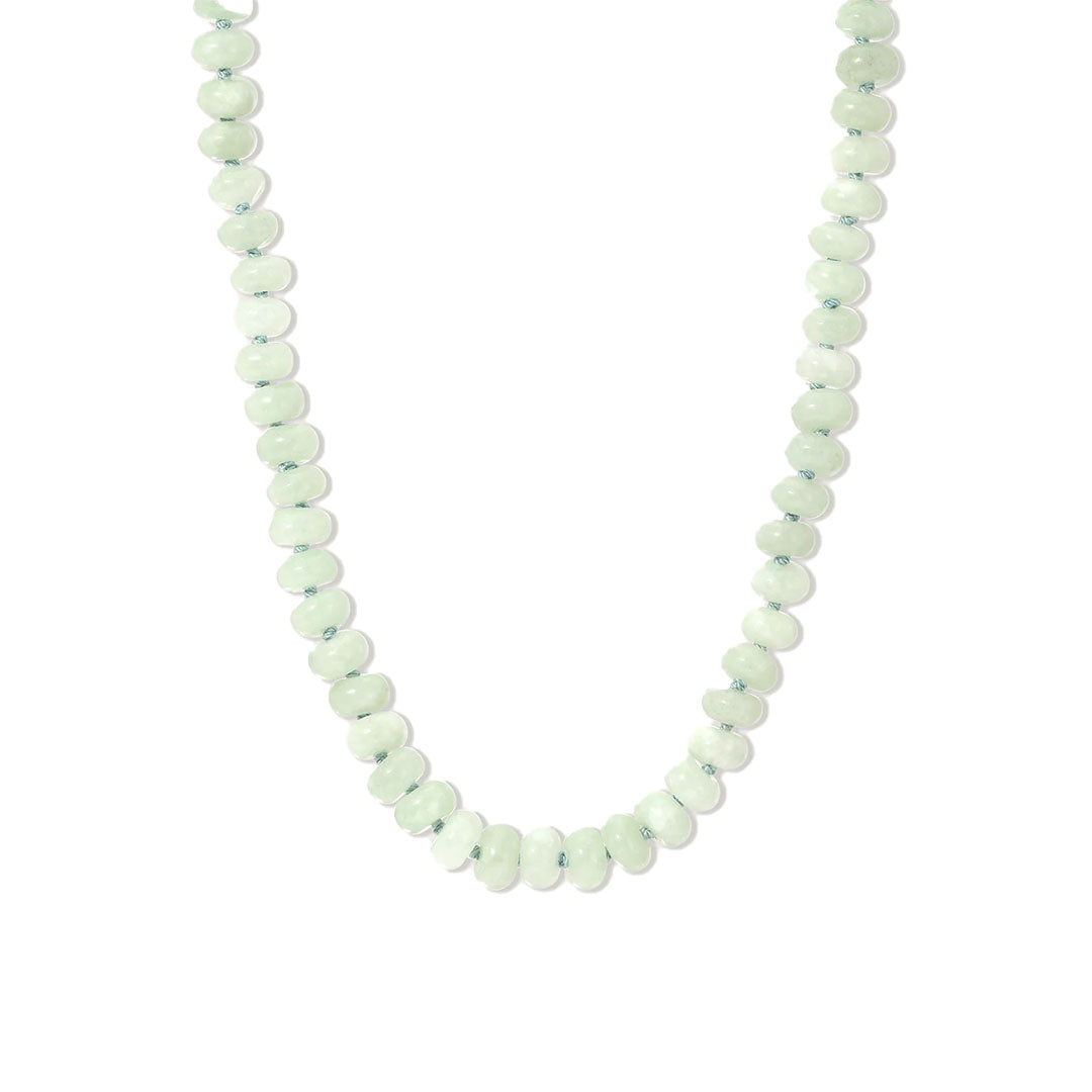 AR's limited-edition Matcha Latte Gemstone Necklace brings a soft wash of pale green color to your everyday layers. Each jade bead is hand-strung in Los Angeles and chosen for its naturally calming presence, long associated with harmony, protection, and luck. The color feels modern and fresh, like your favorite morning matcha, and offers an easy way to wear color with intention.