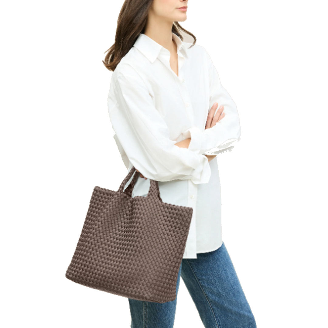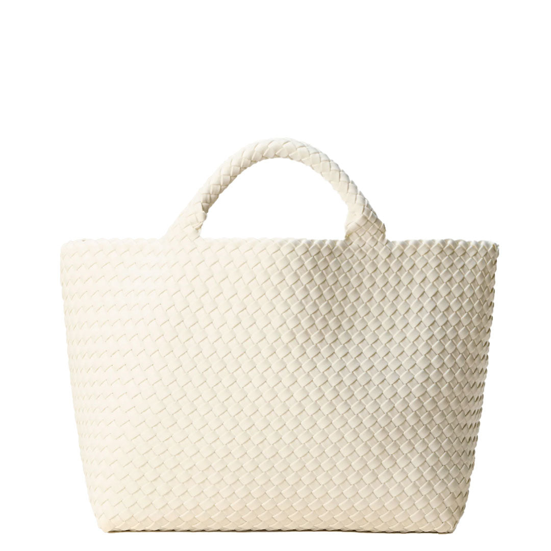 Naghedi's bestselling classic St Barths Medium Tote is made from handwoven strands of neoprene. Use the matching pouch to stash your essentials or as a clutch for a night out!