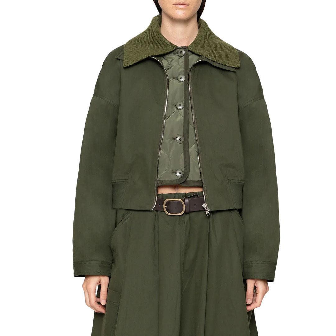 The Sullivan bomber jacket features a structured outer shell and a quilted jacket underneath, offering a refined, layered silhouette with added warmth and visual depth. Finished with a ribbed collar, discreet pockets, and a cropped silhouette, it blends utilitarian function with minimalist sophistication.