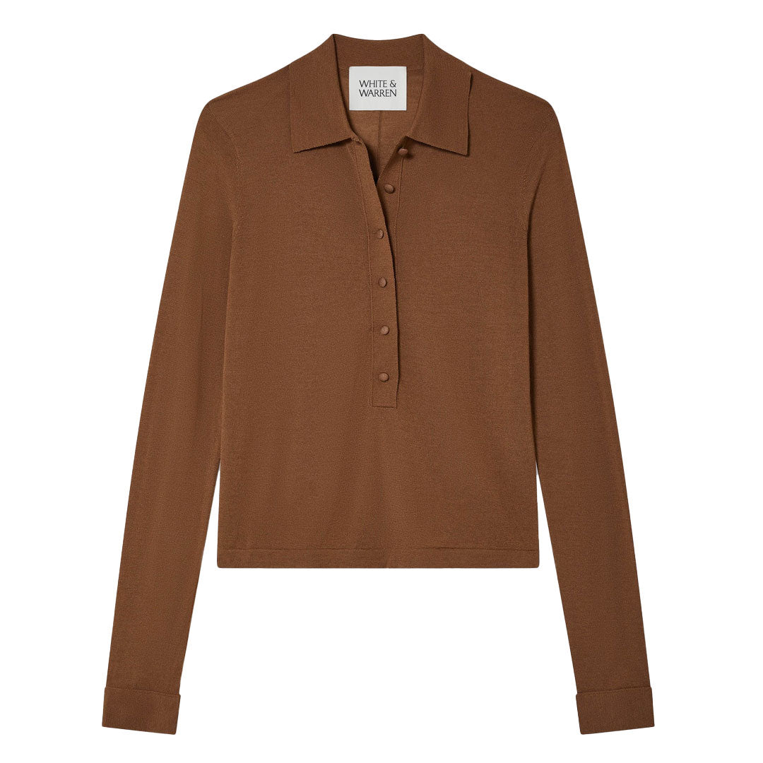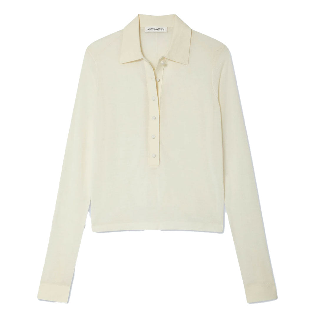 A refined polo. Finely knit from superfine merino wool, this easy silhouette features a crisp collar and deep placket with covered buttons for an understated, elevated finish.